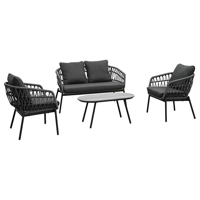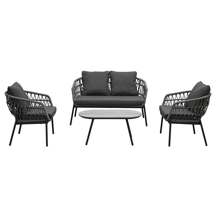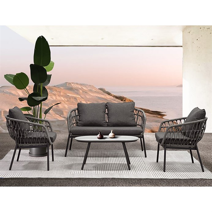 Kerti Ülőgarnitúra, Fém + Polyrattan, Szürke. AZ-L1880 GREY