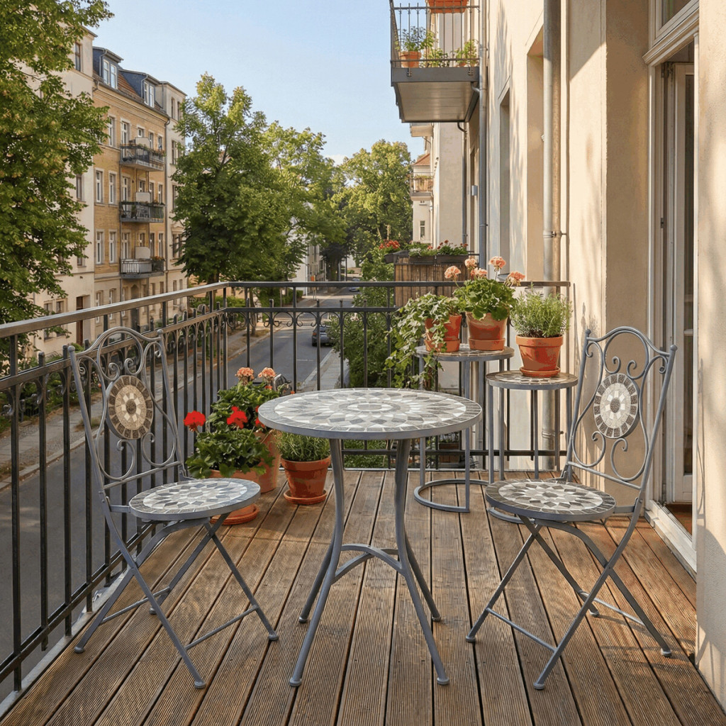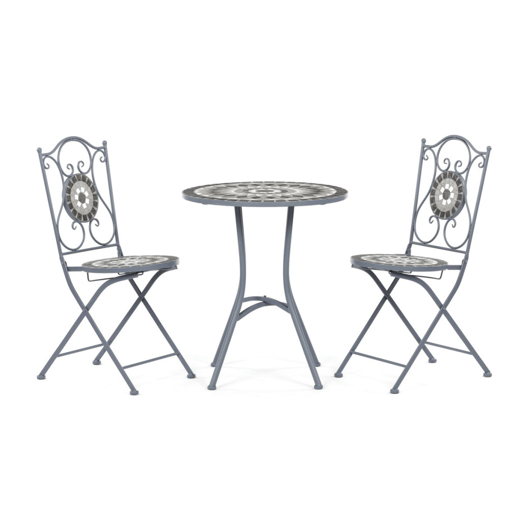 Kerti bútor szett 1+2, fém, kerámia mozaik, szürke, US1500 SET