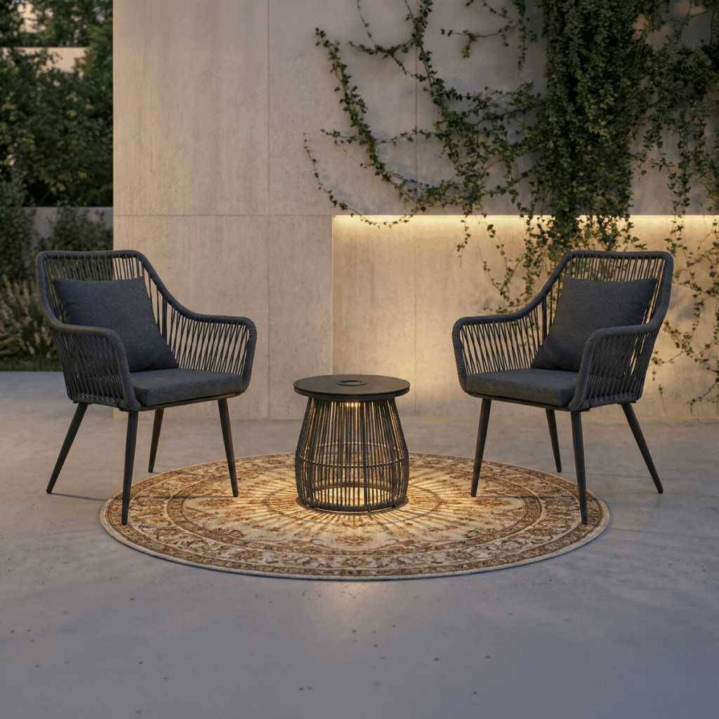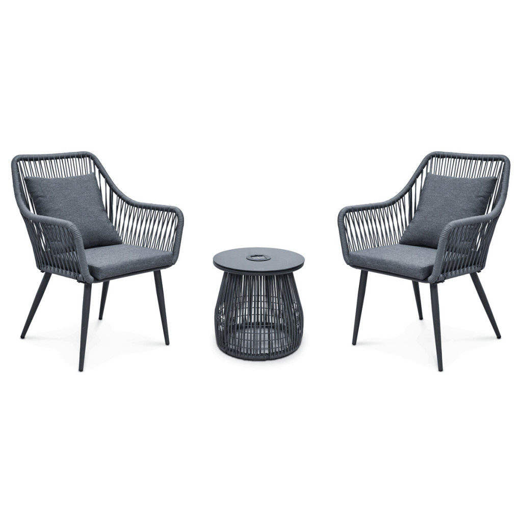 Kerti bútor szett 1+2, szolár világítással, fém, szürke, AZS-L1314 GREY