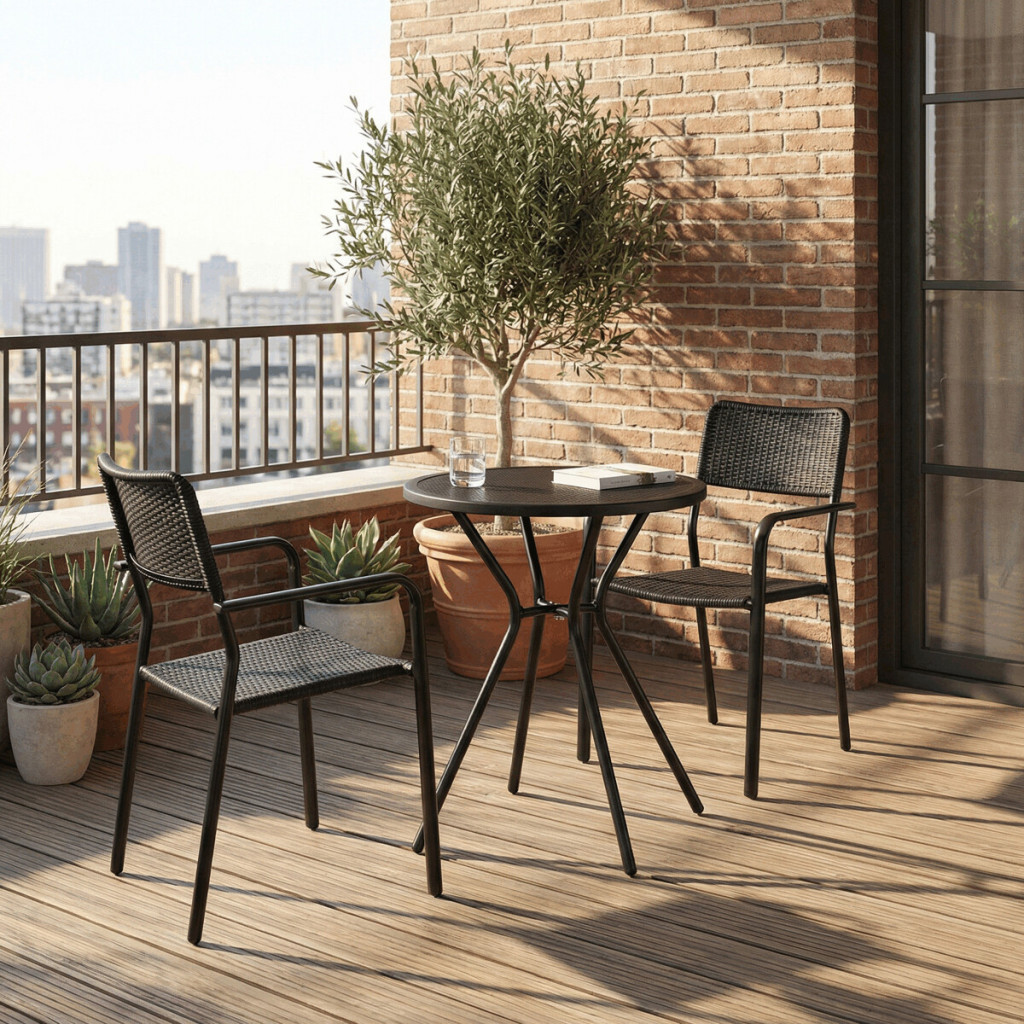 Kerti asztal 60x60 cm, fém, műanyag, fekete, AZT-H1021 BK