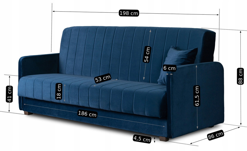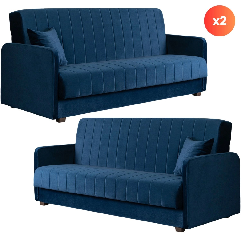 2 db-os szett, ágyazható kanapé sötétkék színben, velúr kárpittal PORTO