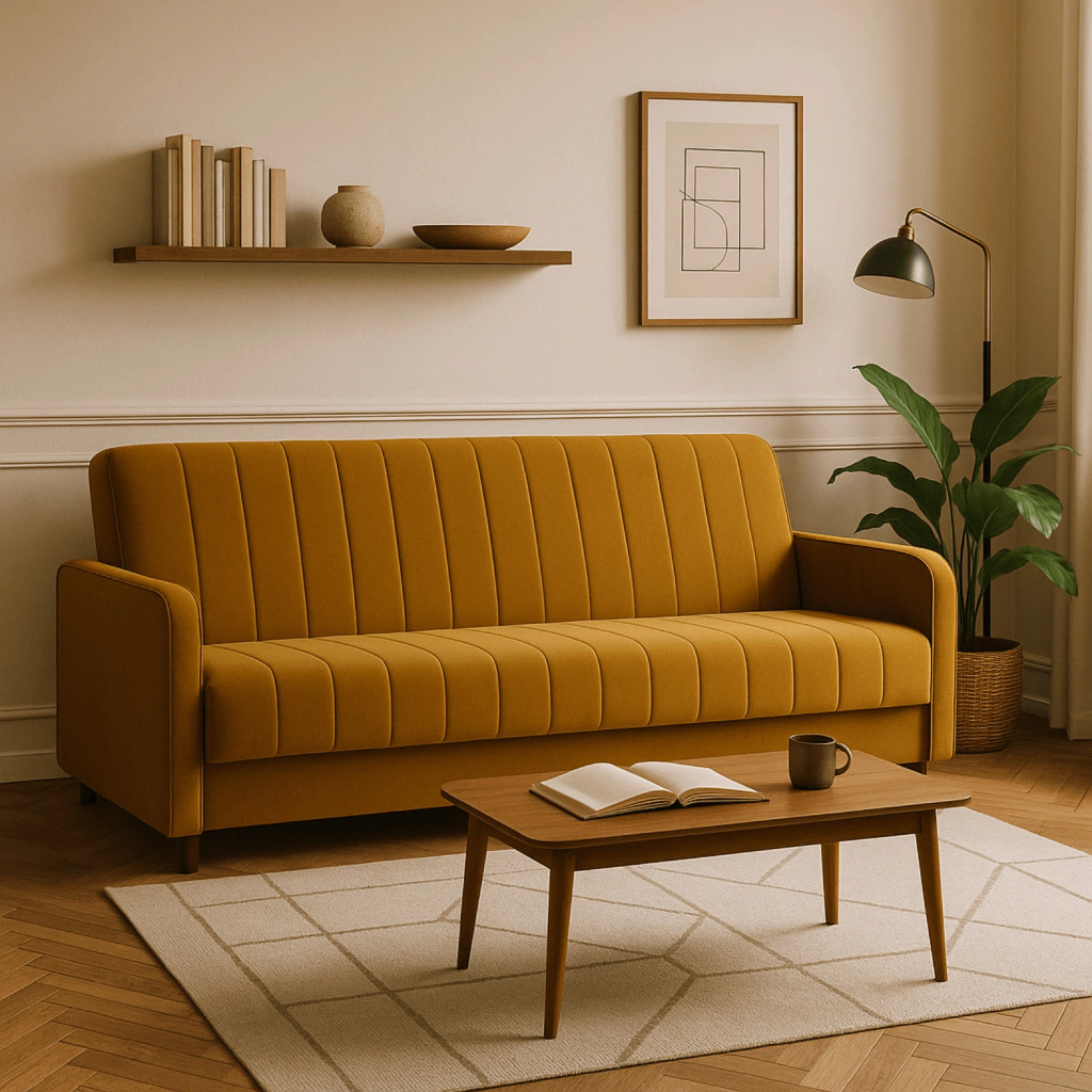 2 db-os szett, ágyazható kanapé mustársárga színben, velúr kárpittal PORTO