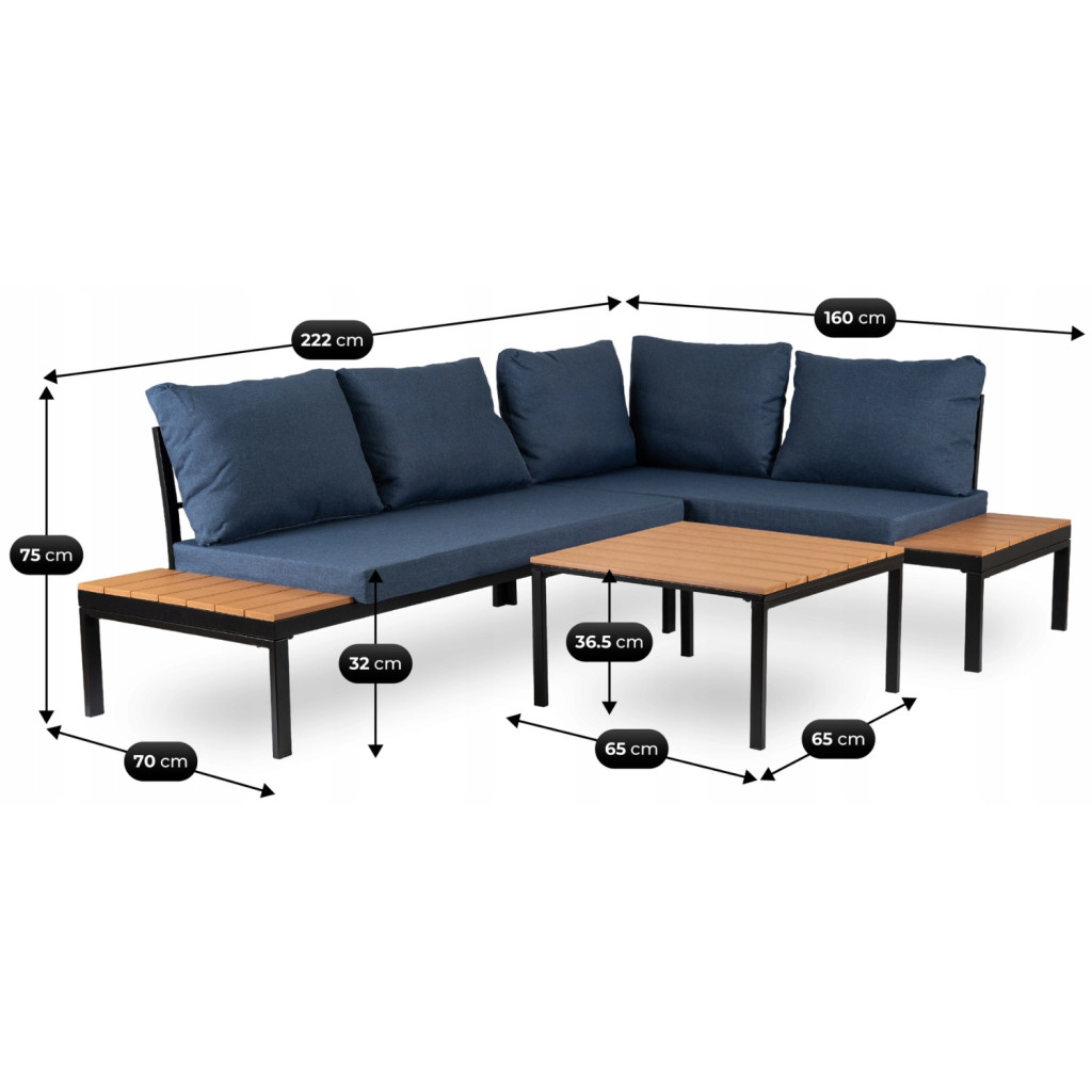 Kerti bútor szett sötétkék / fekete színkombinációban – NORMAN