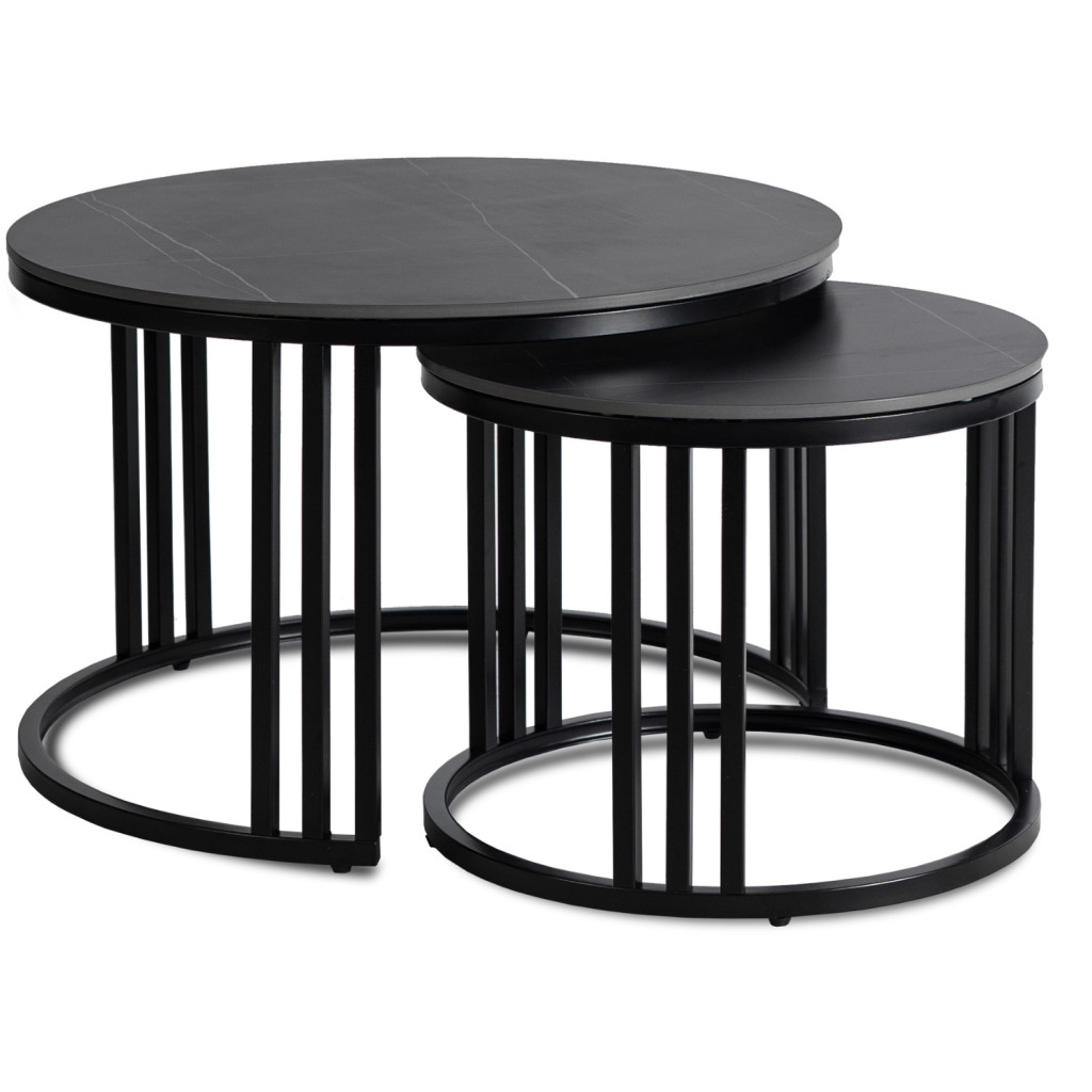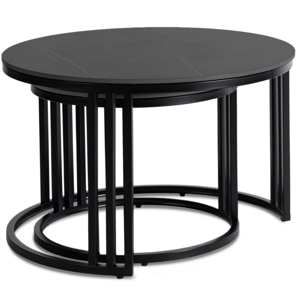Kerámia dohányzóasztal szett fekete márvány/fekete színben JERRY