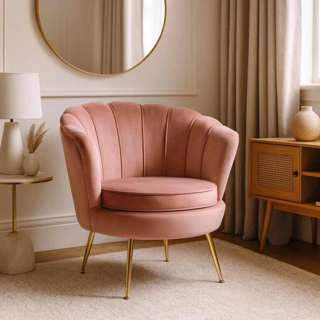 Fotel rózsaszín velúr kárpitozással - ANGEL