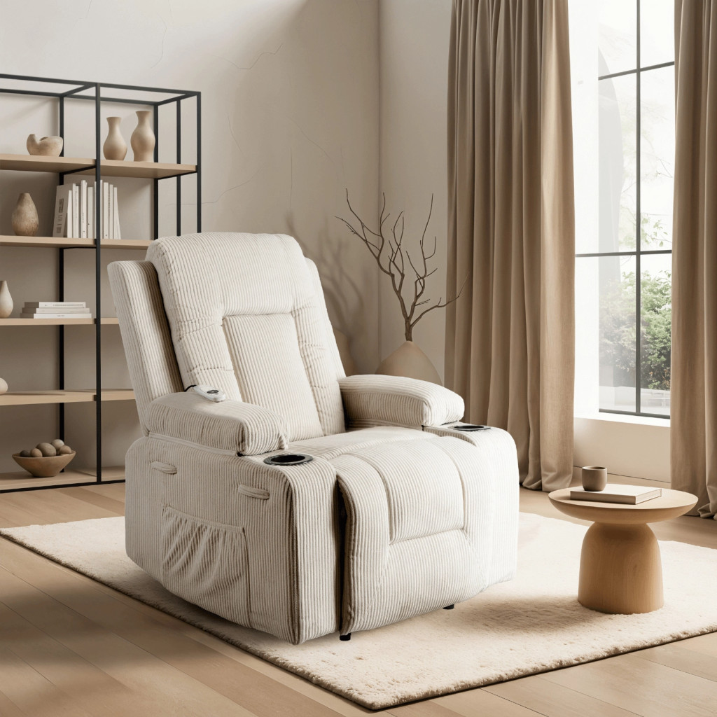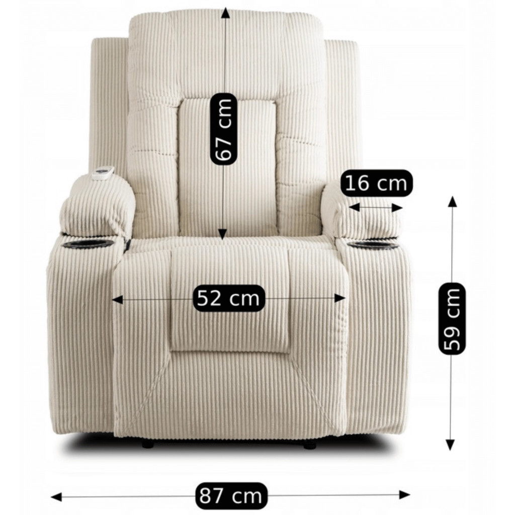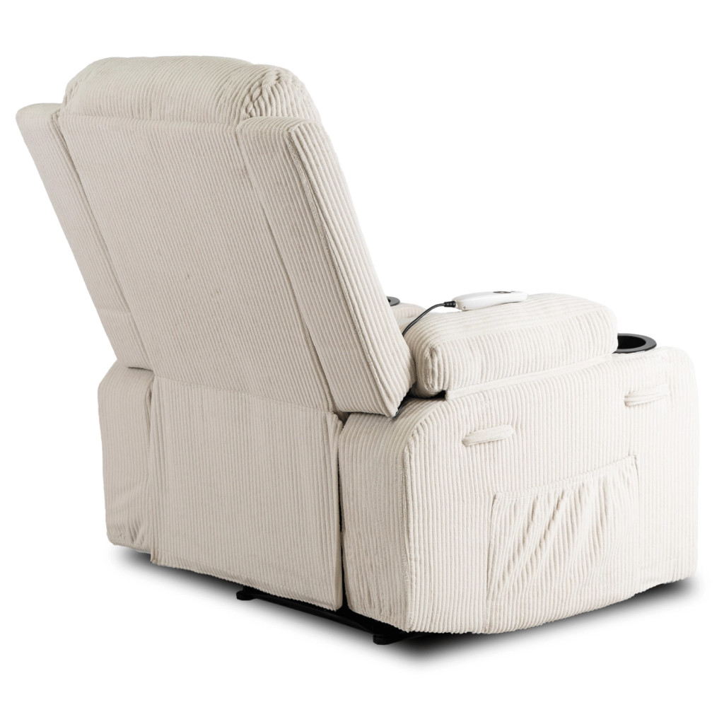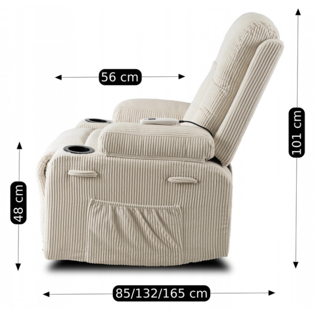 BOX Recliner Massage Chair Beige Corduroy Upholstery