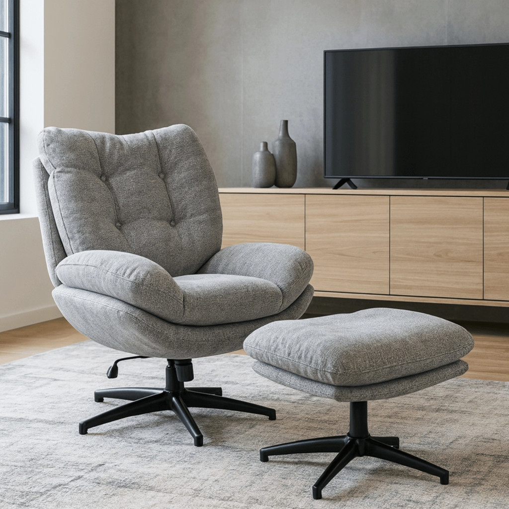 Forgó pihenőfotel lábtartóval szürke, FREMONT