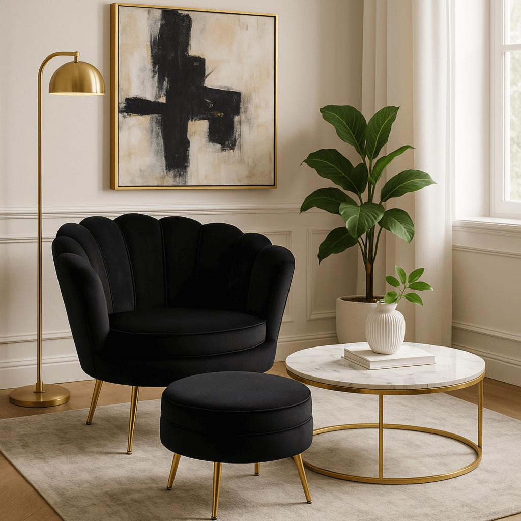 Fotel lábtartóval, fekete színben, velúr kárpittal GRAND
