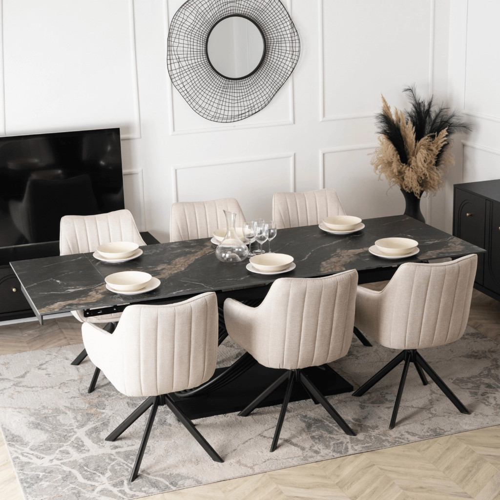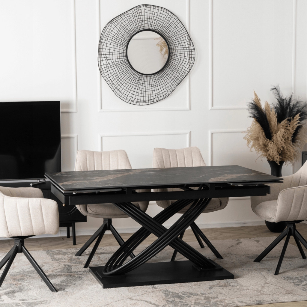 Extendable ceramic dining table 160-240 cm in black color - Ibiza