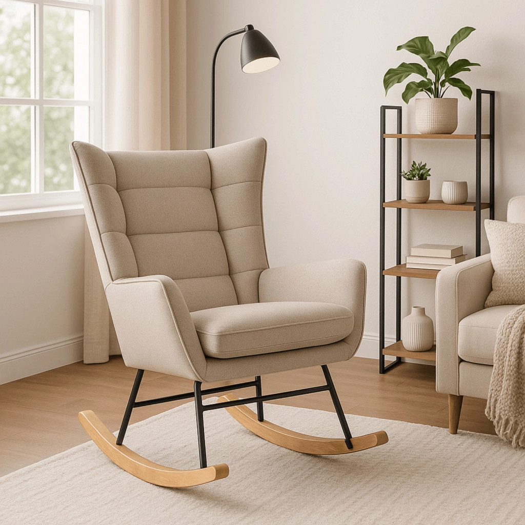 JACKSON Rocking Chair Beige Fabric/Walnut Effect
