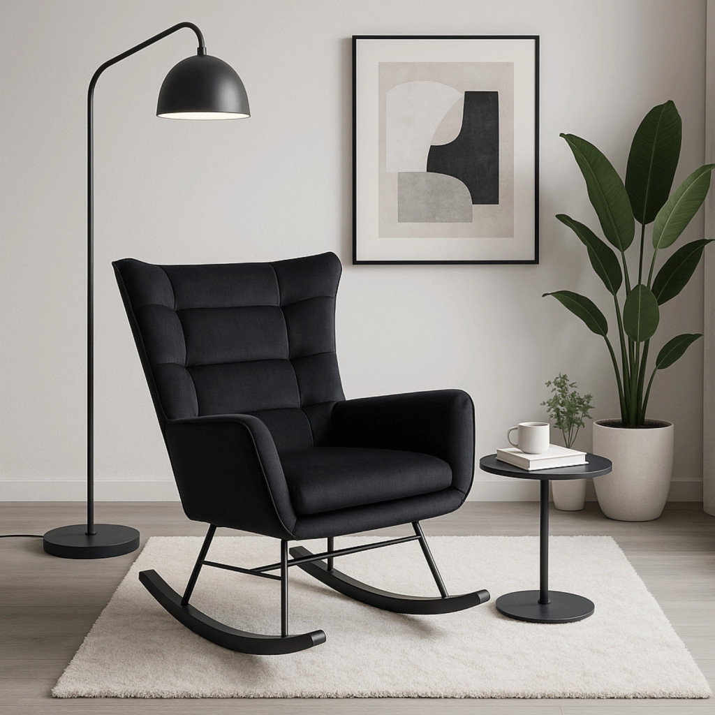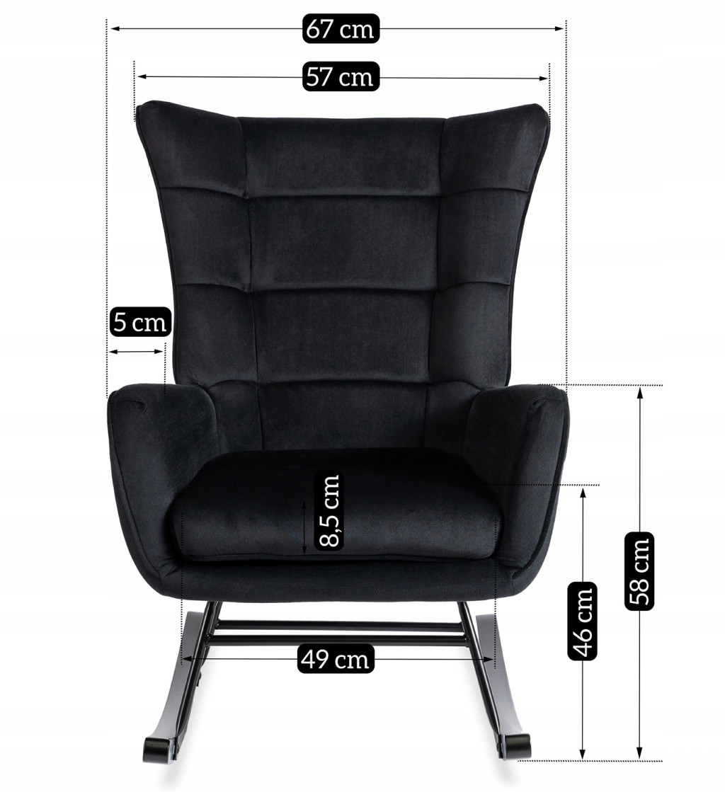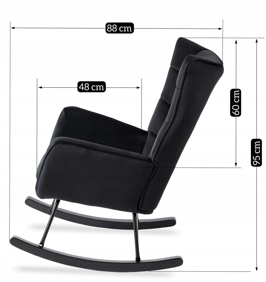 JACKSON Rocking Chair Black Velvet Upholstery