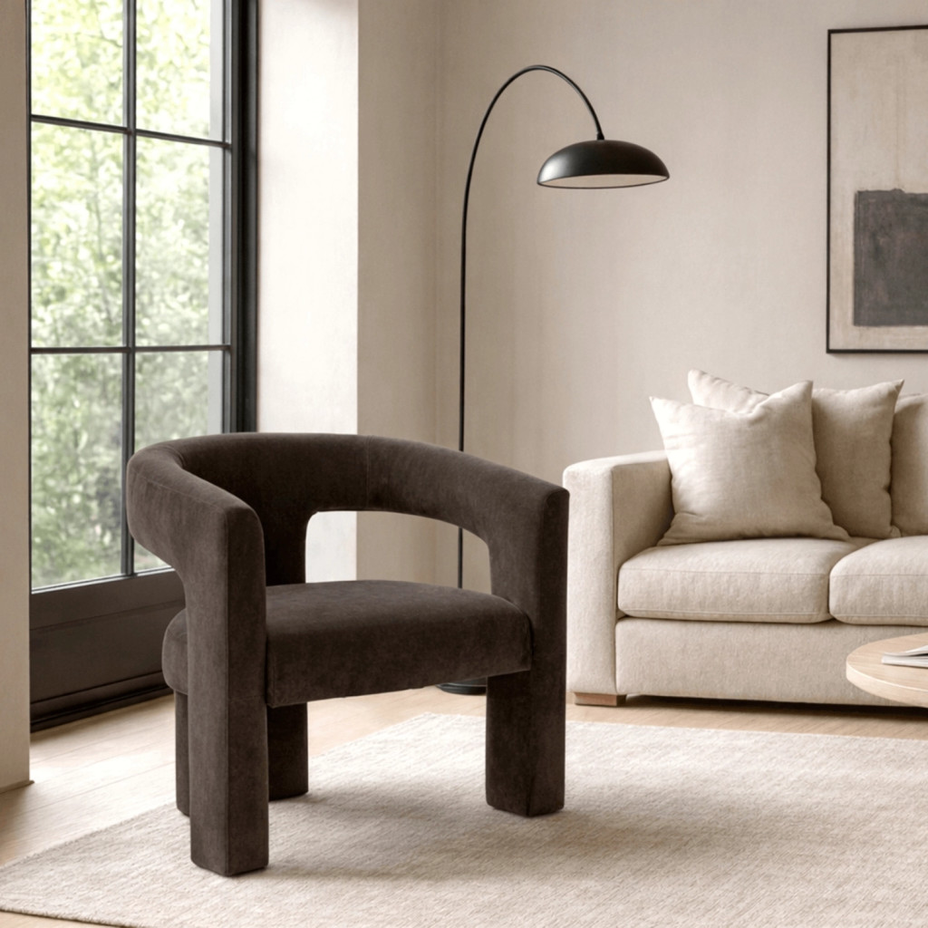 Brown Velvet Lounge Armchair LILLE