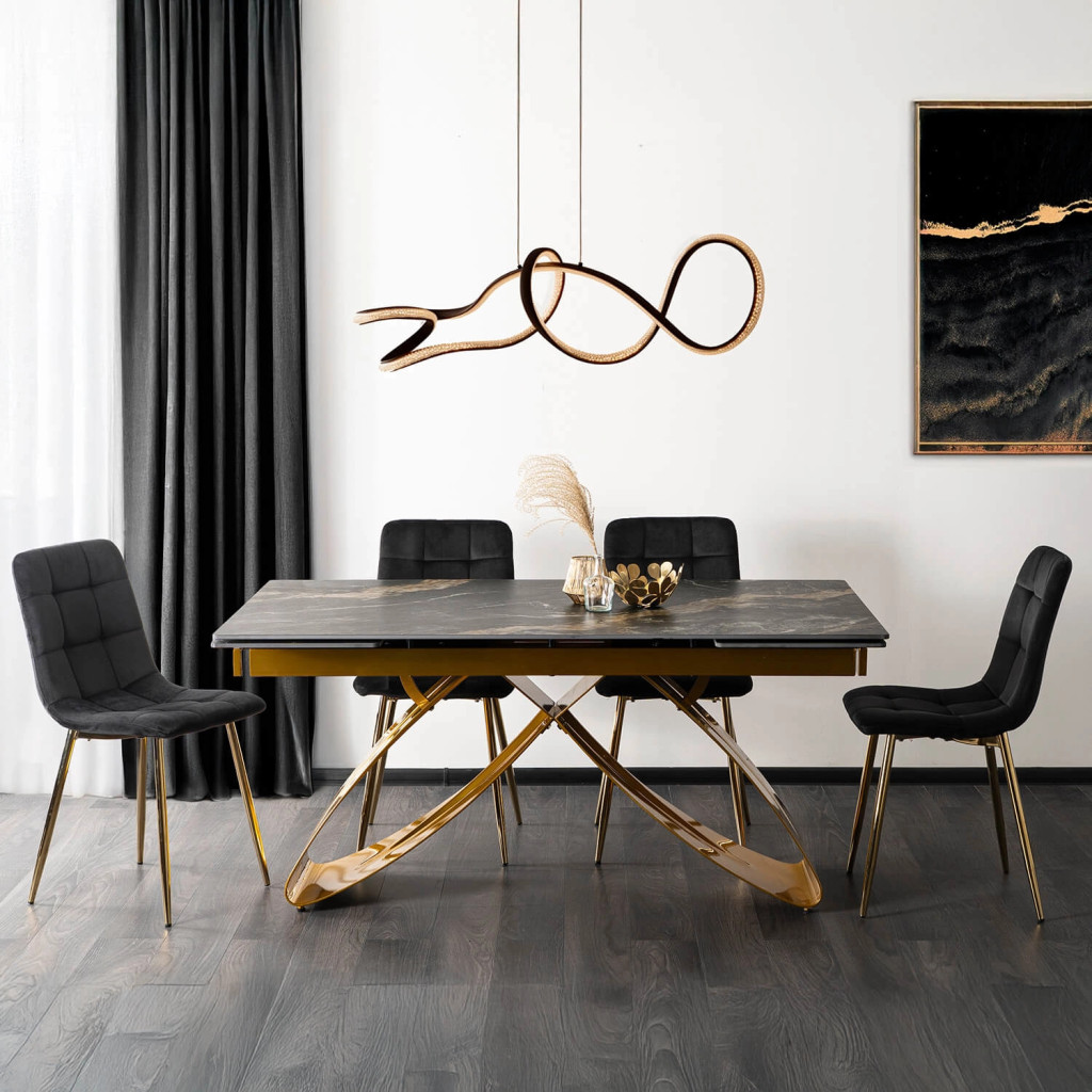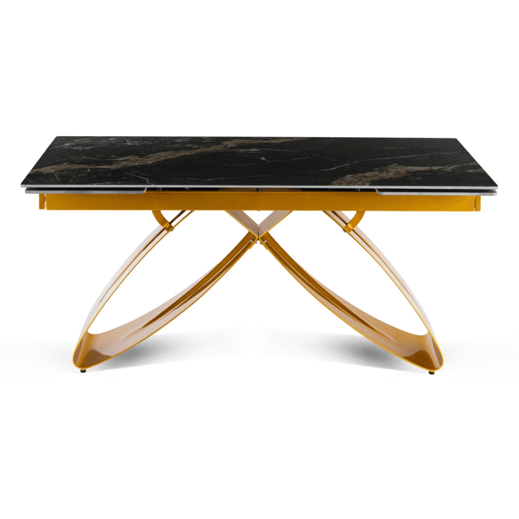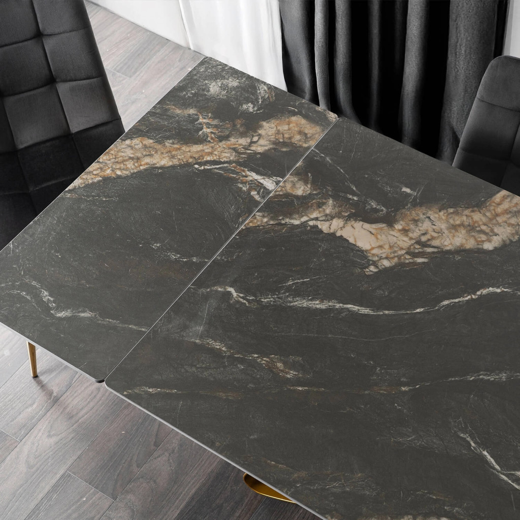 Extendable ceramic dining table 160-240 cm in black-gold marble/gold finish - Luigi