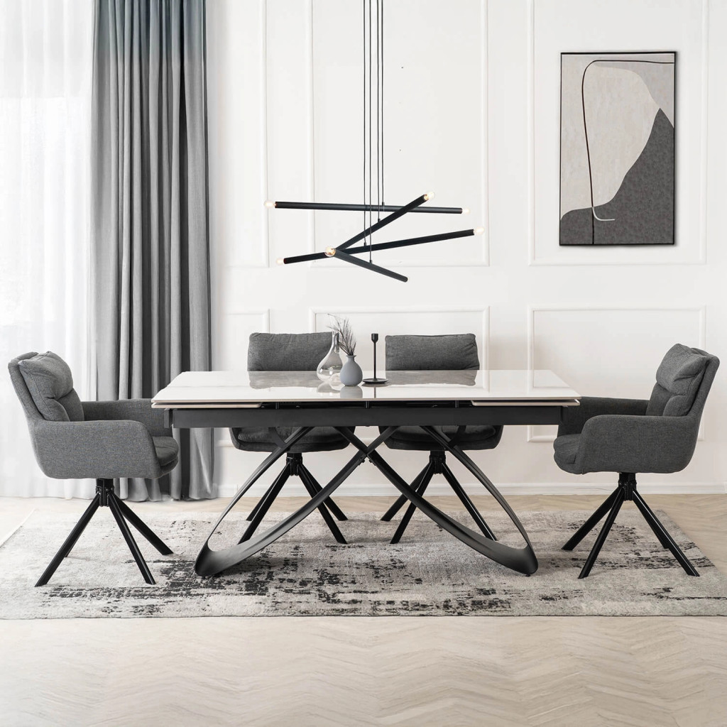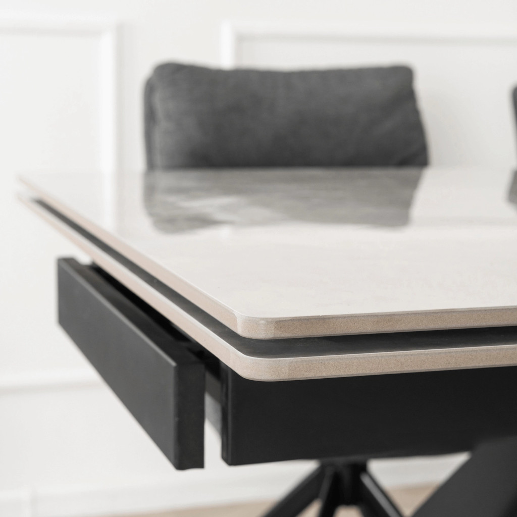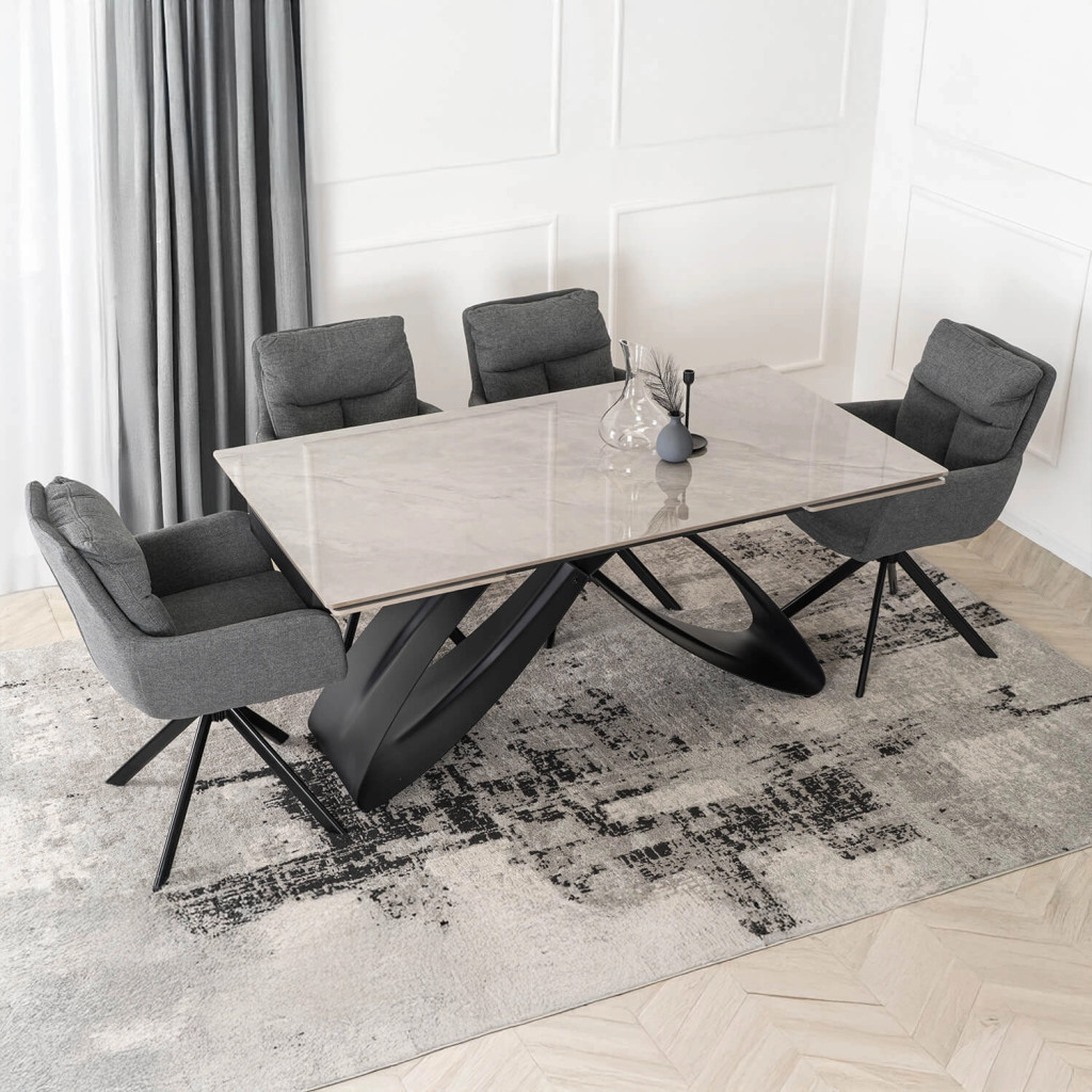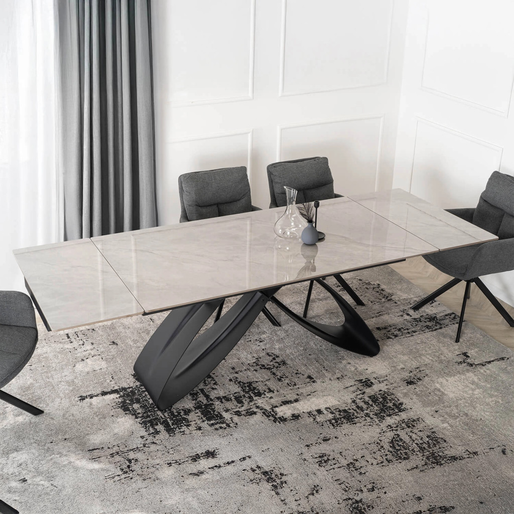 Extendable Ceramic Dining Table 160-240 cm Grey Marble/Black LUIGI