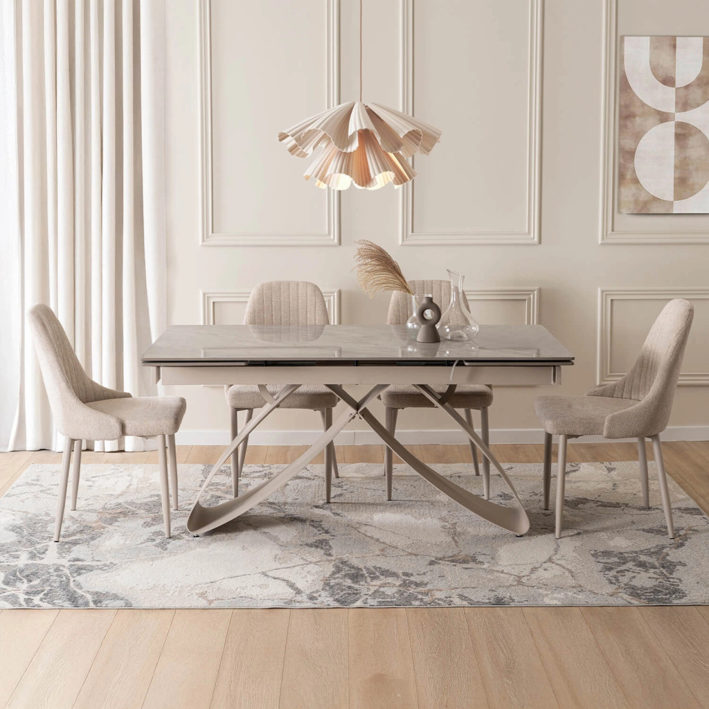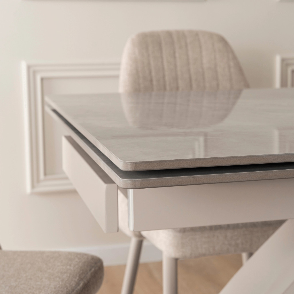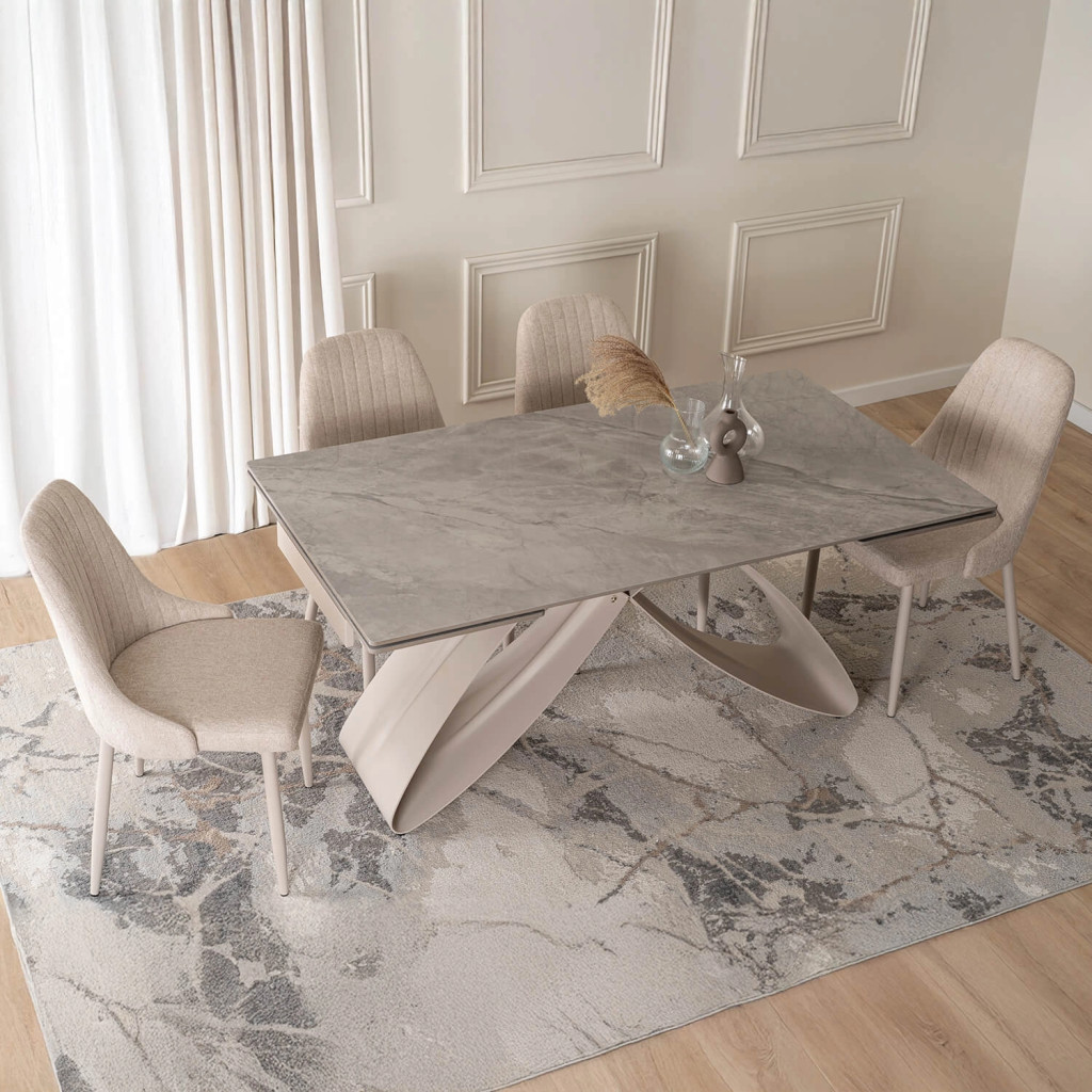 Extendable Ceramic Dining Table 160-240 cm Grey Marble/Cashmere LUIGI