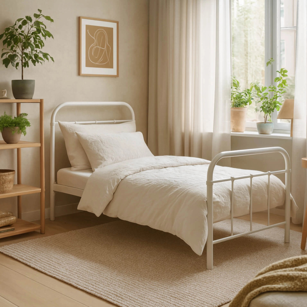 Fém ágy 90x200 cm méretben, fehér színben PABLO