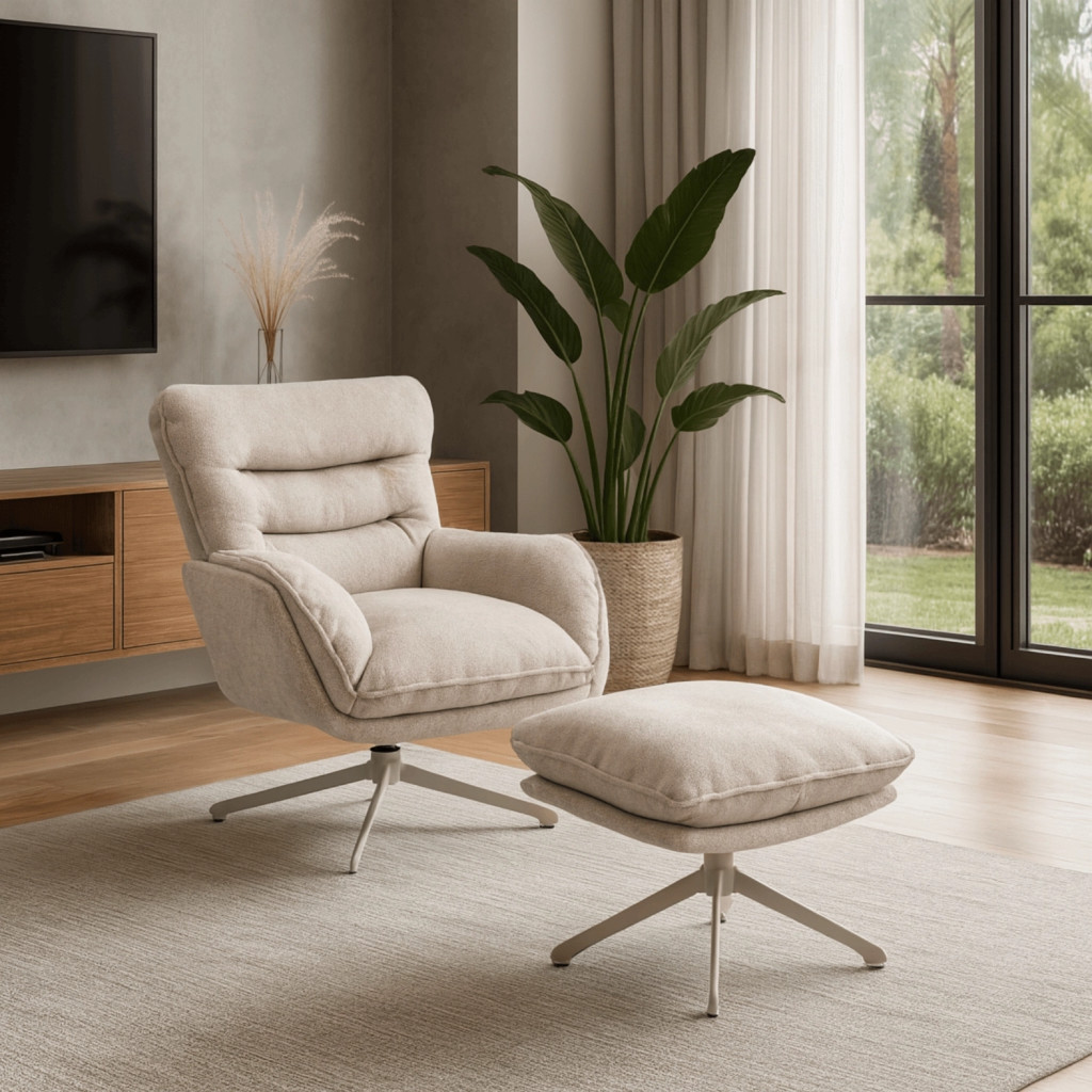 Forgó pihenőfotel lábtartóval krém, PASADENA