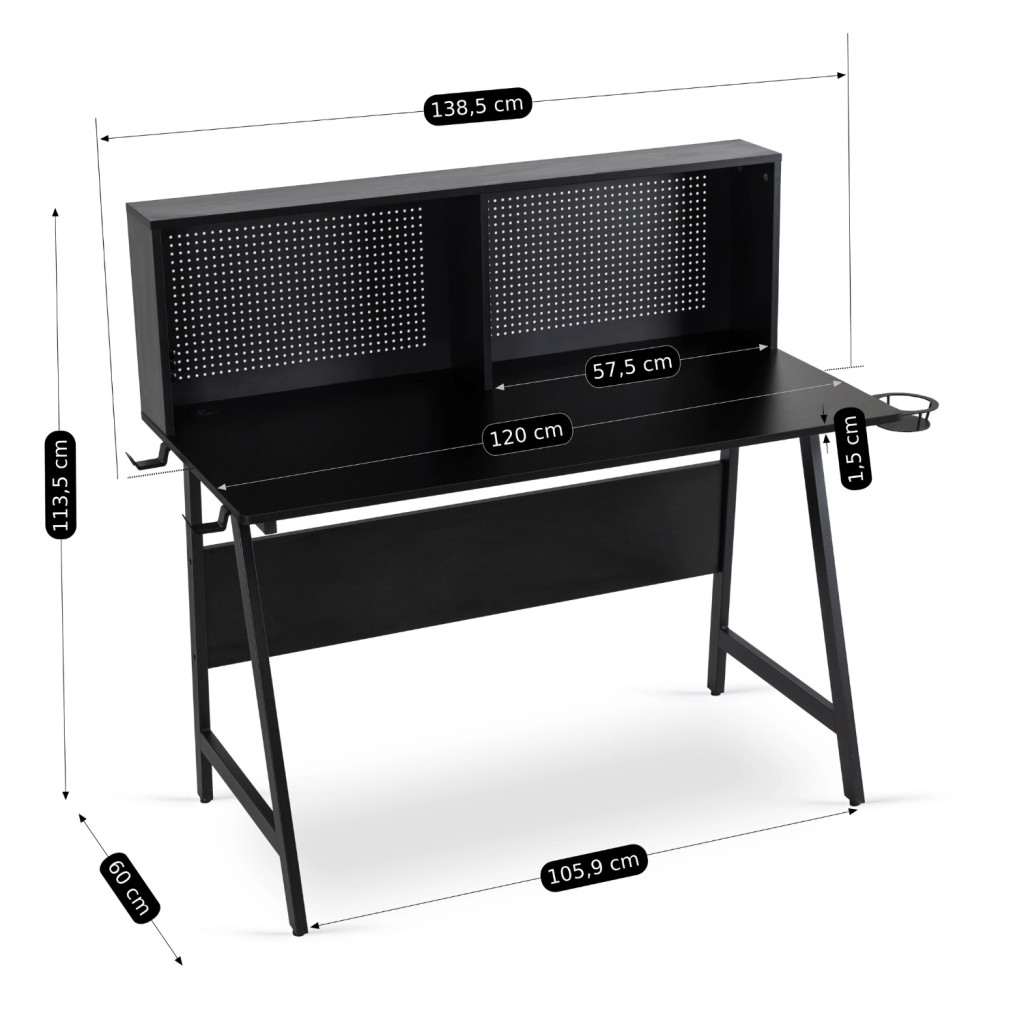 Gaming íróasztal 138,5 cm méretben, fekete kivitelben ROLL