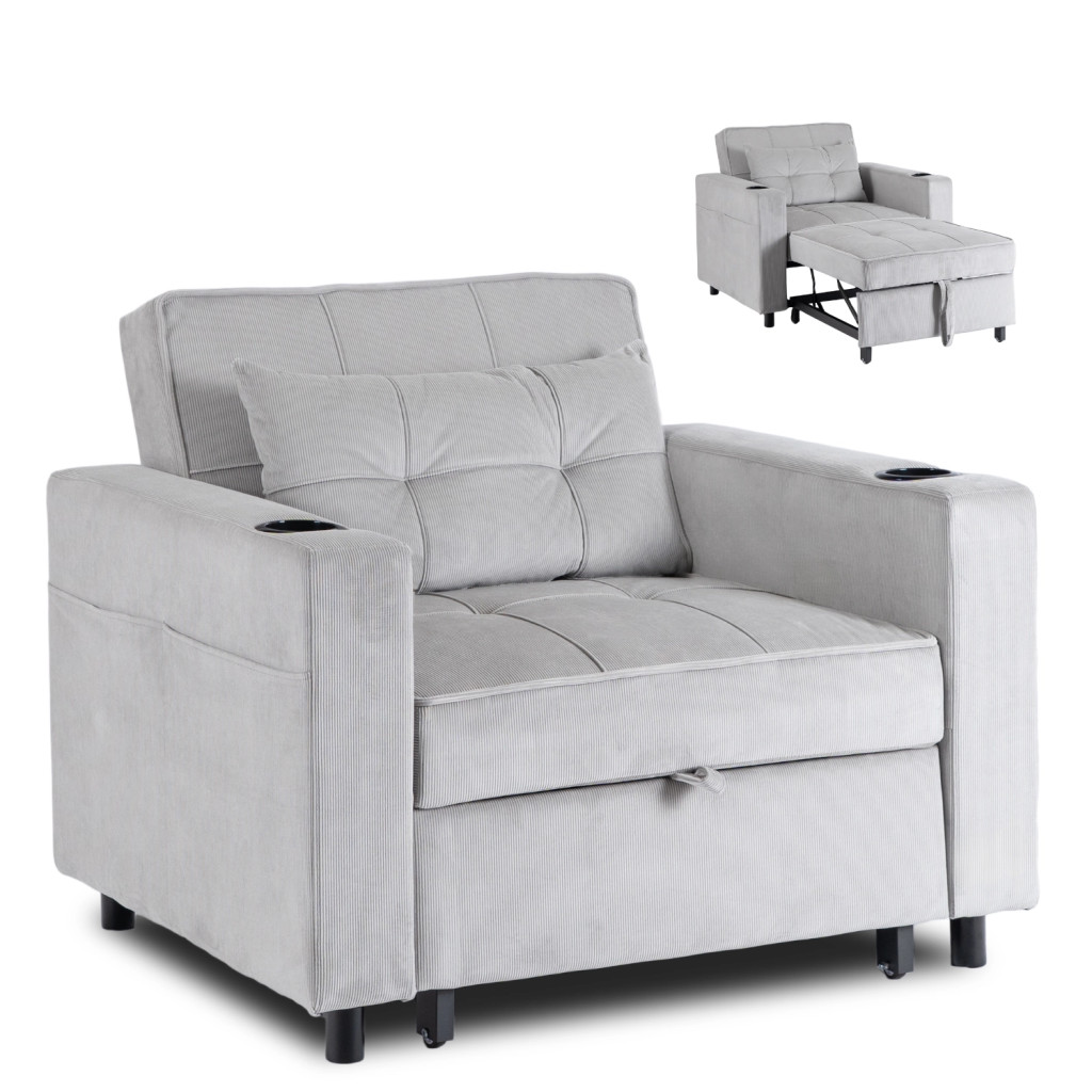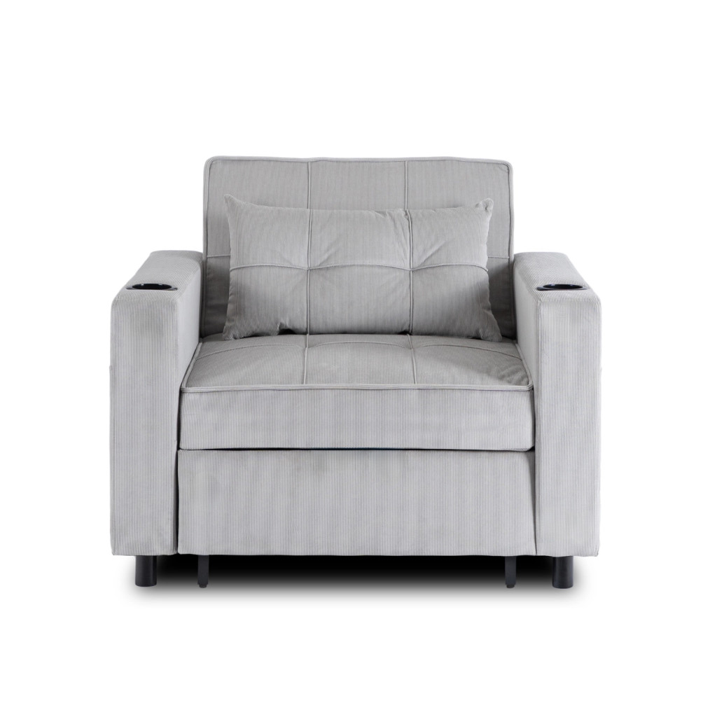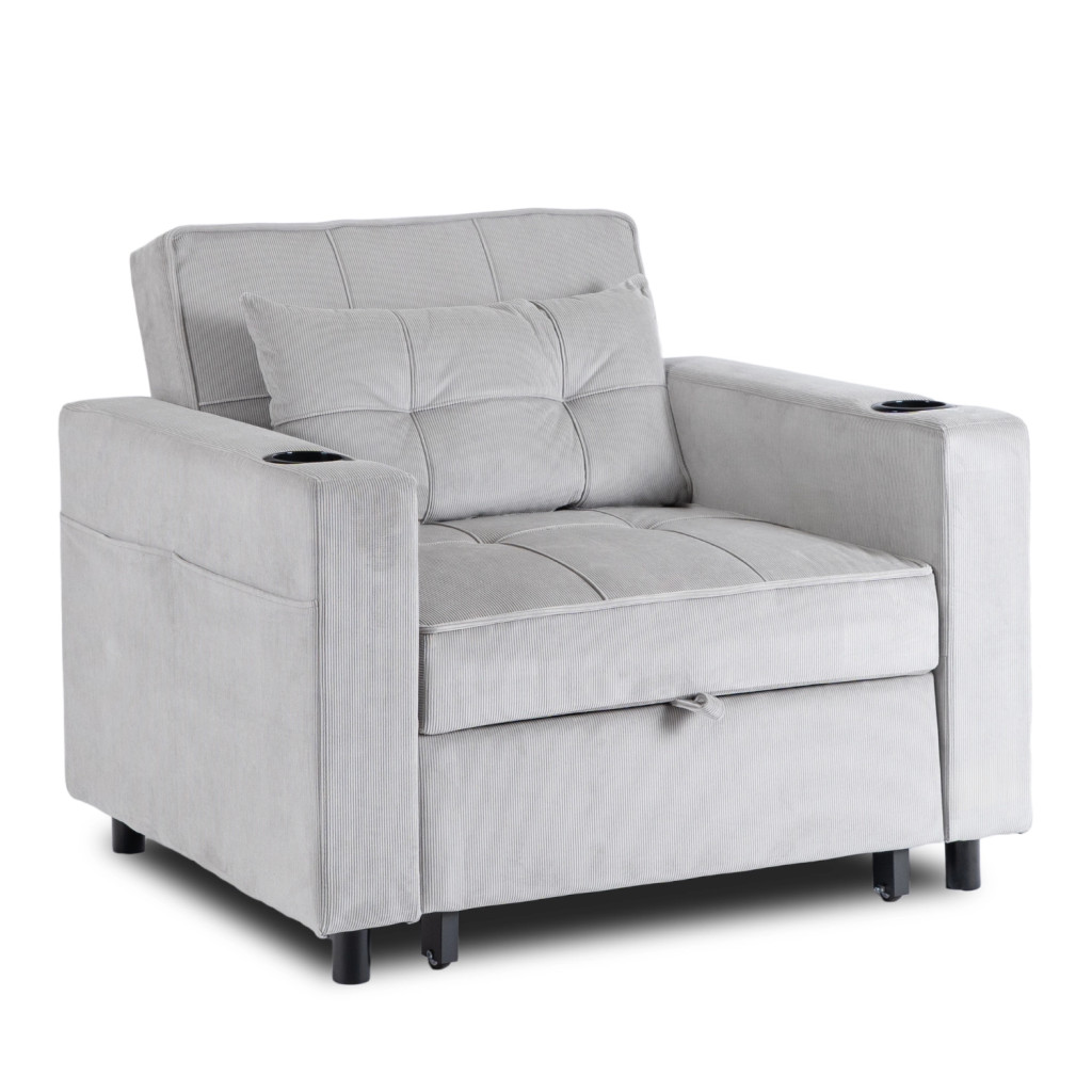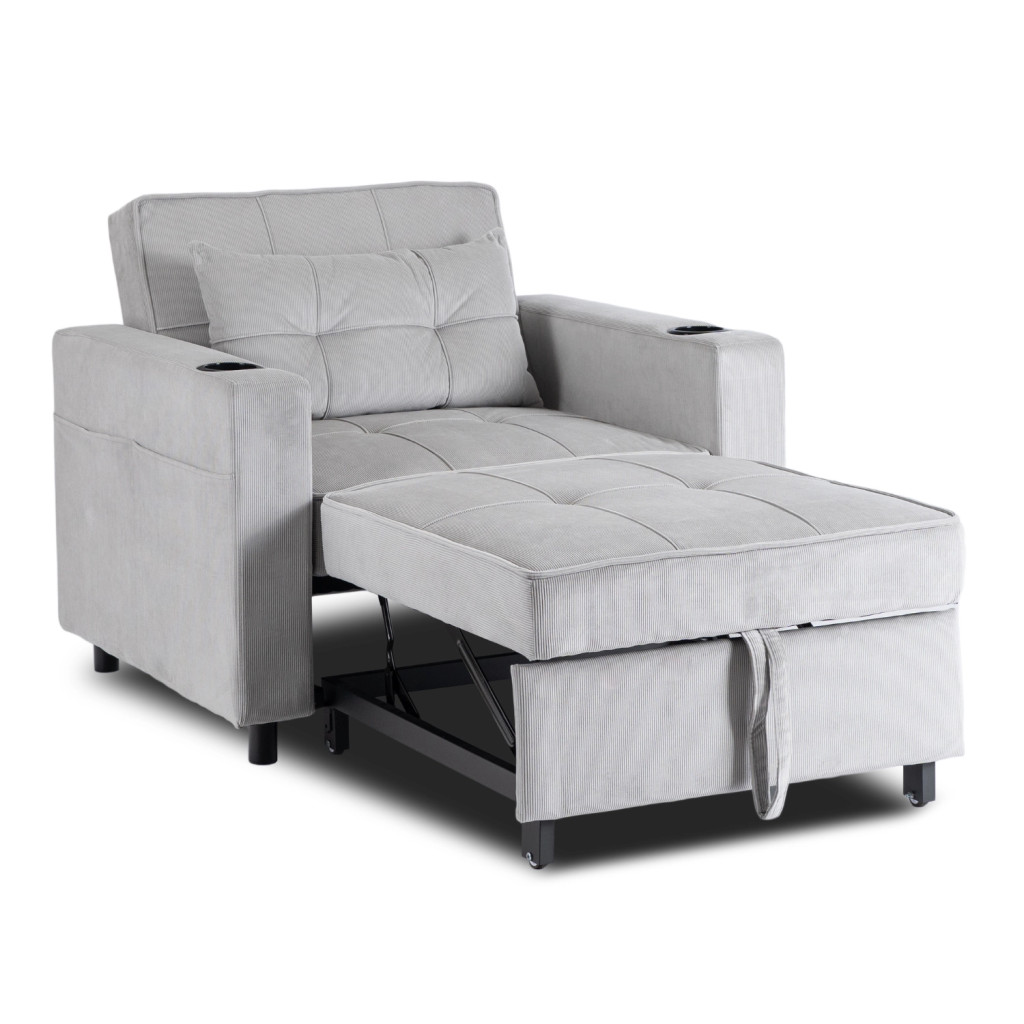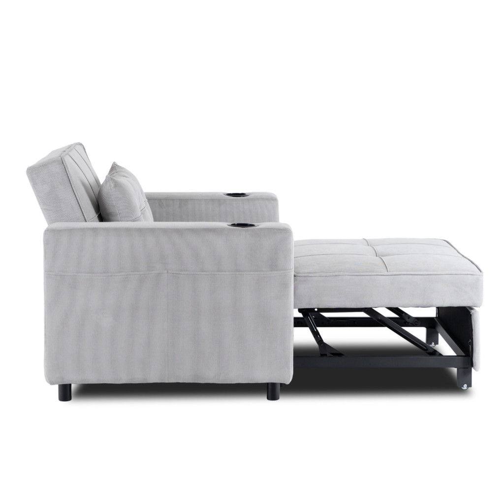 SOLOR Recliner Armchair Grey Corduroy Upholstery