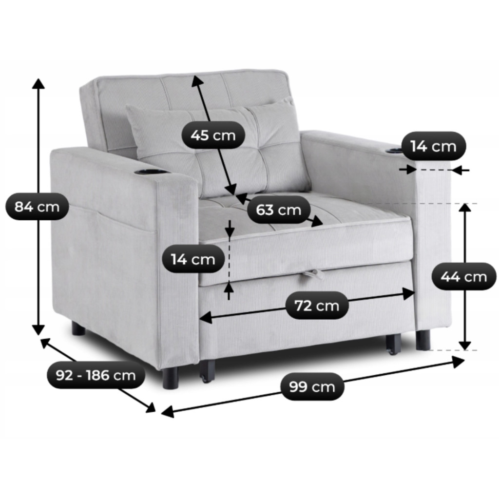 Fotel mélység nyitott állapotban: