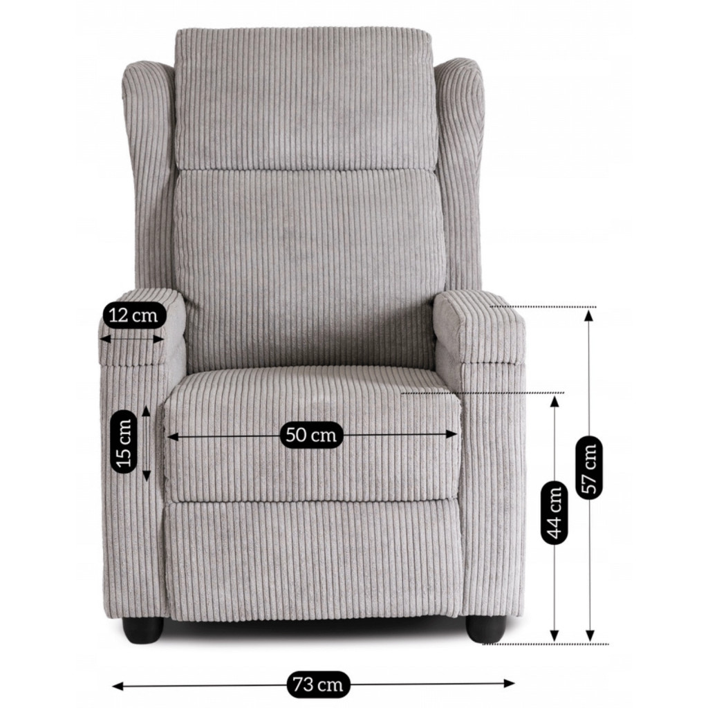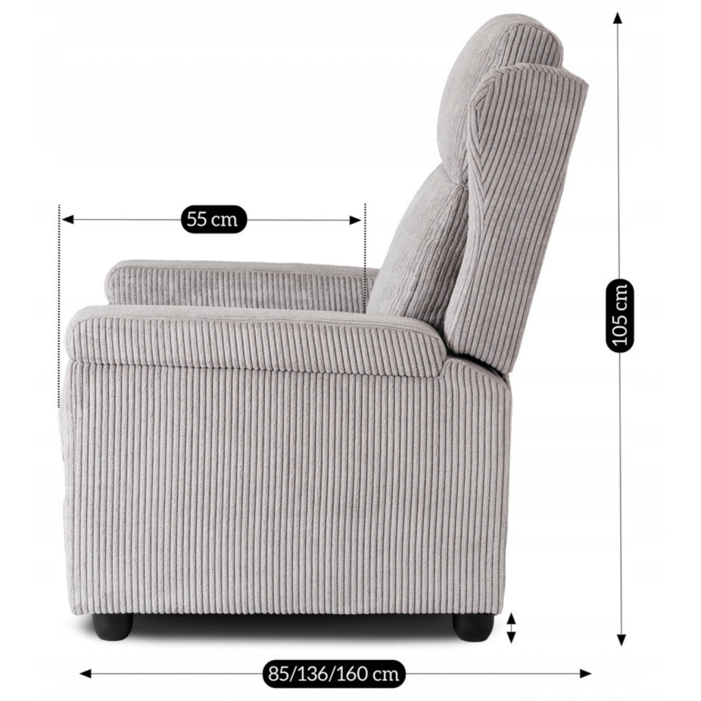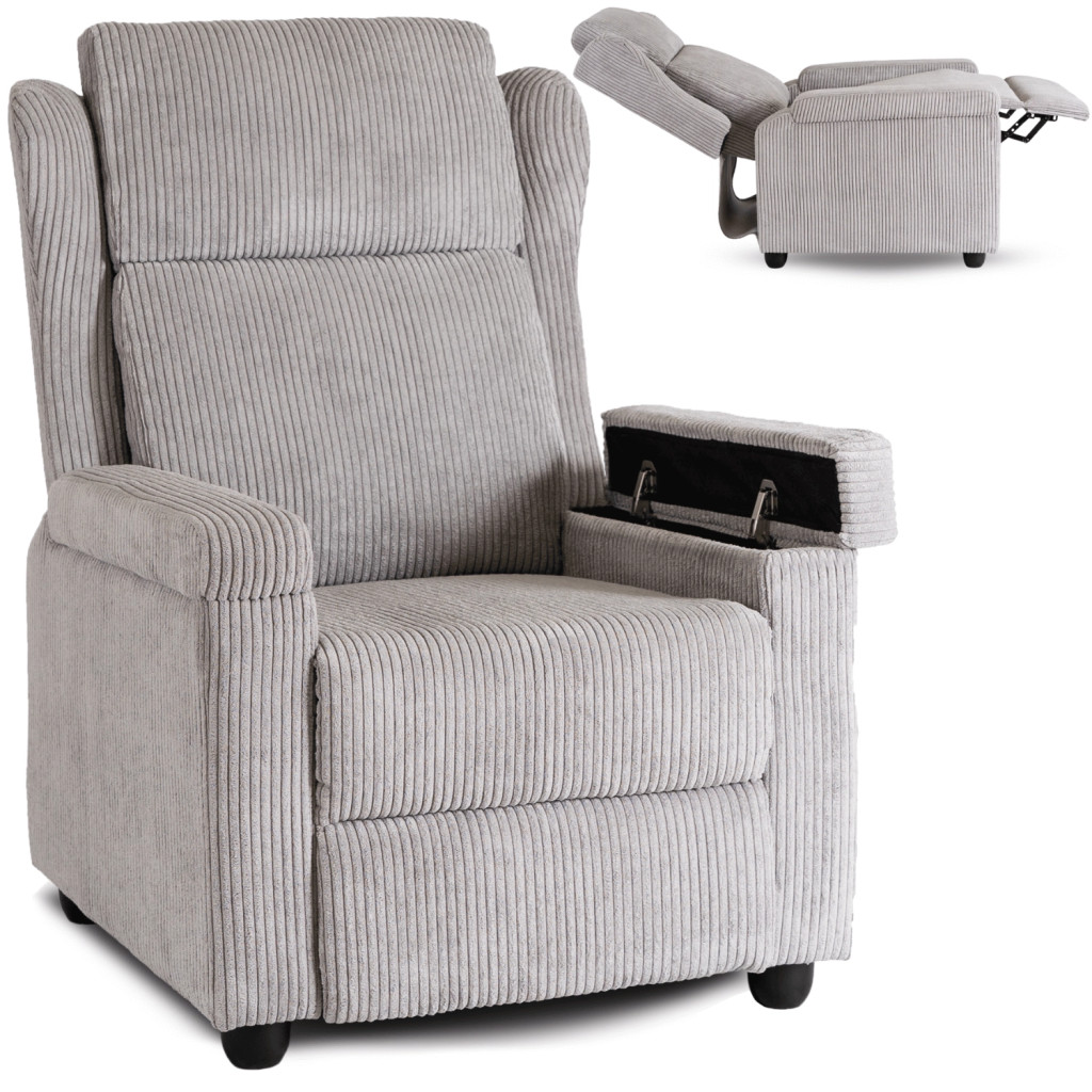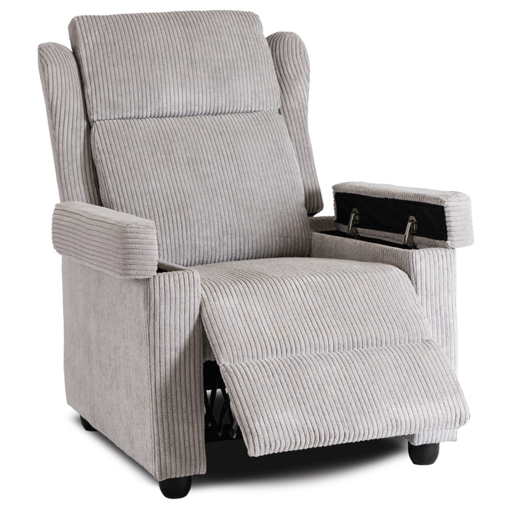 SPENCER Recliner Armchair Grey Corduroy Upholstery