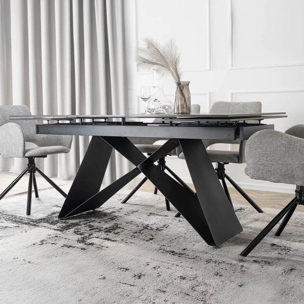 Extendable ceramic dining table 160-240 cm in black marble/black finish - Victor