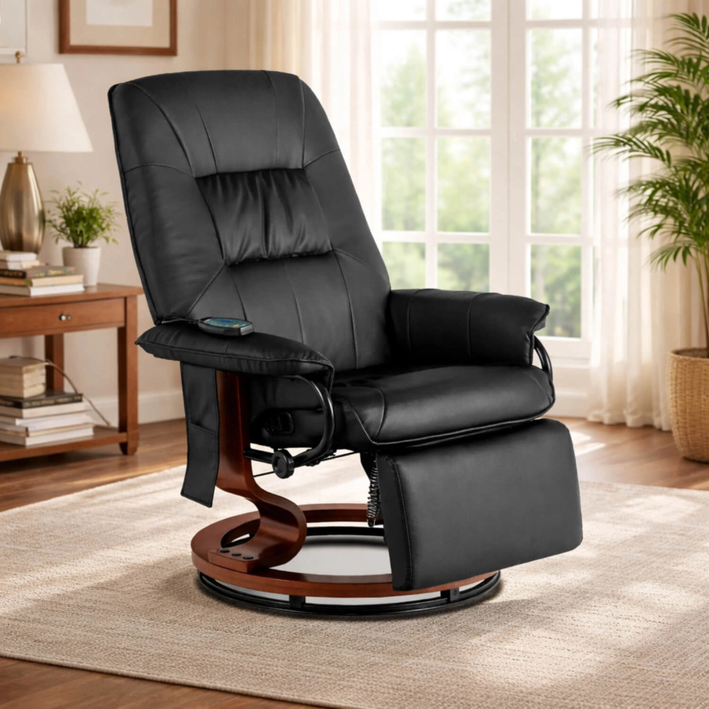 WEST Swivel Massage Chair with Heating Black Faux Leather