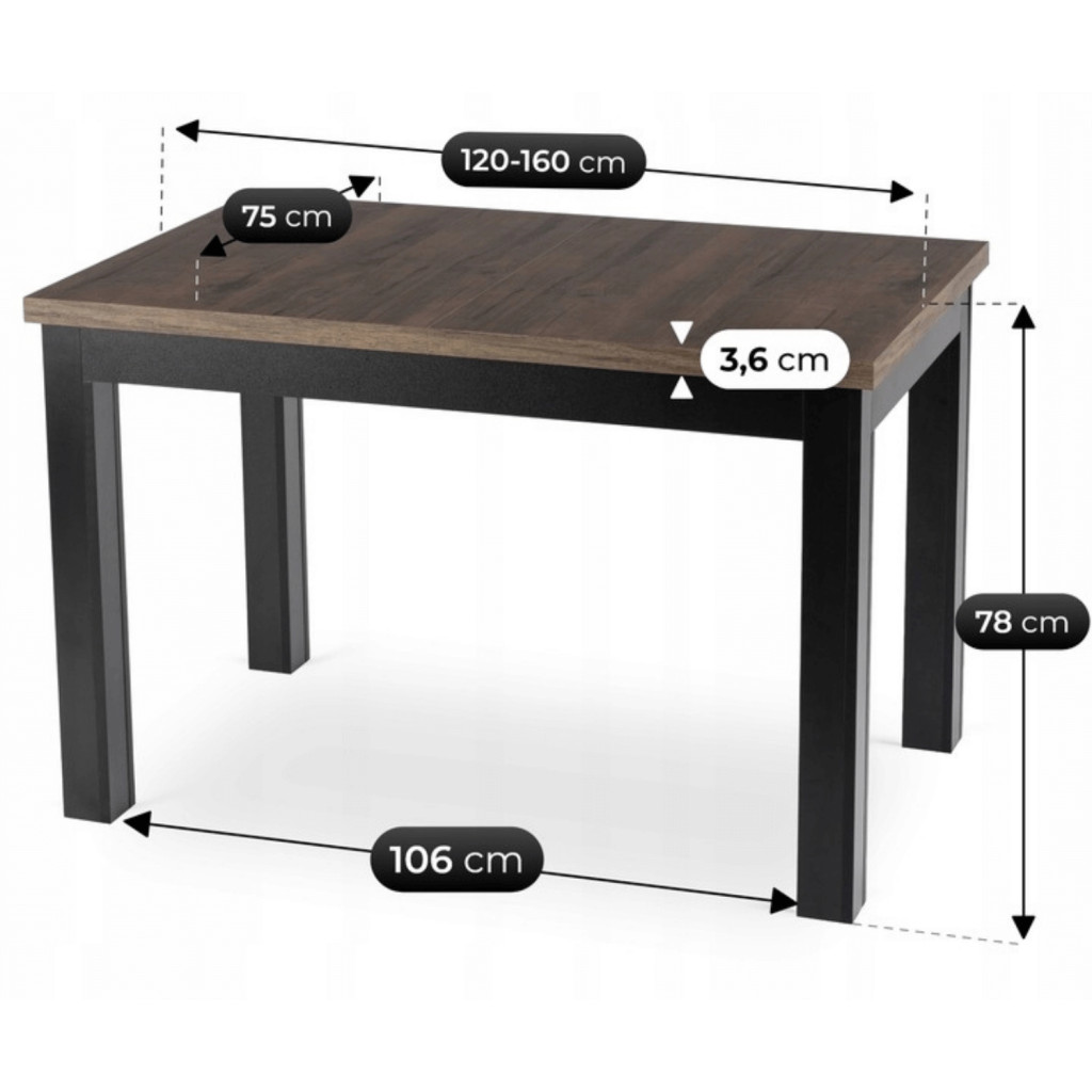 Stół SKUBI Rozkładany 120-160 cm Orzech/Czarny