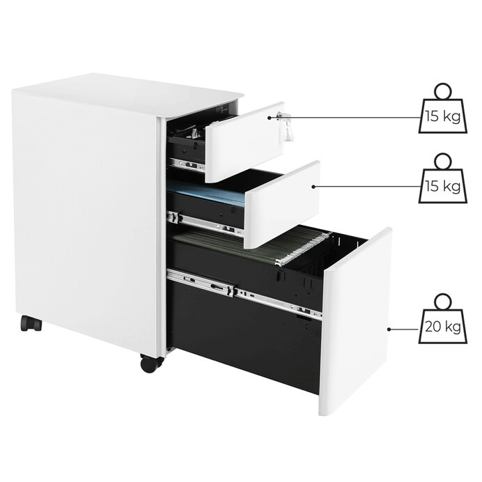 Irodai konténer 30x46x59 cm, fém, fehér, AUK-E1130 WT