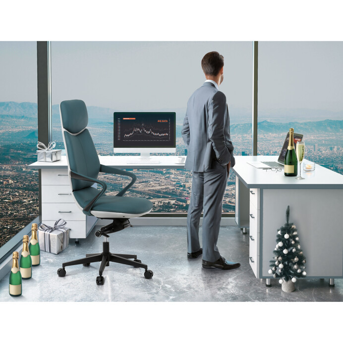 Kék Ekobőr Irodai Főnöki Szék, Hinta Mechanikával. KA-T8426 GRN