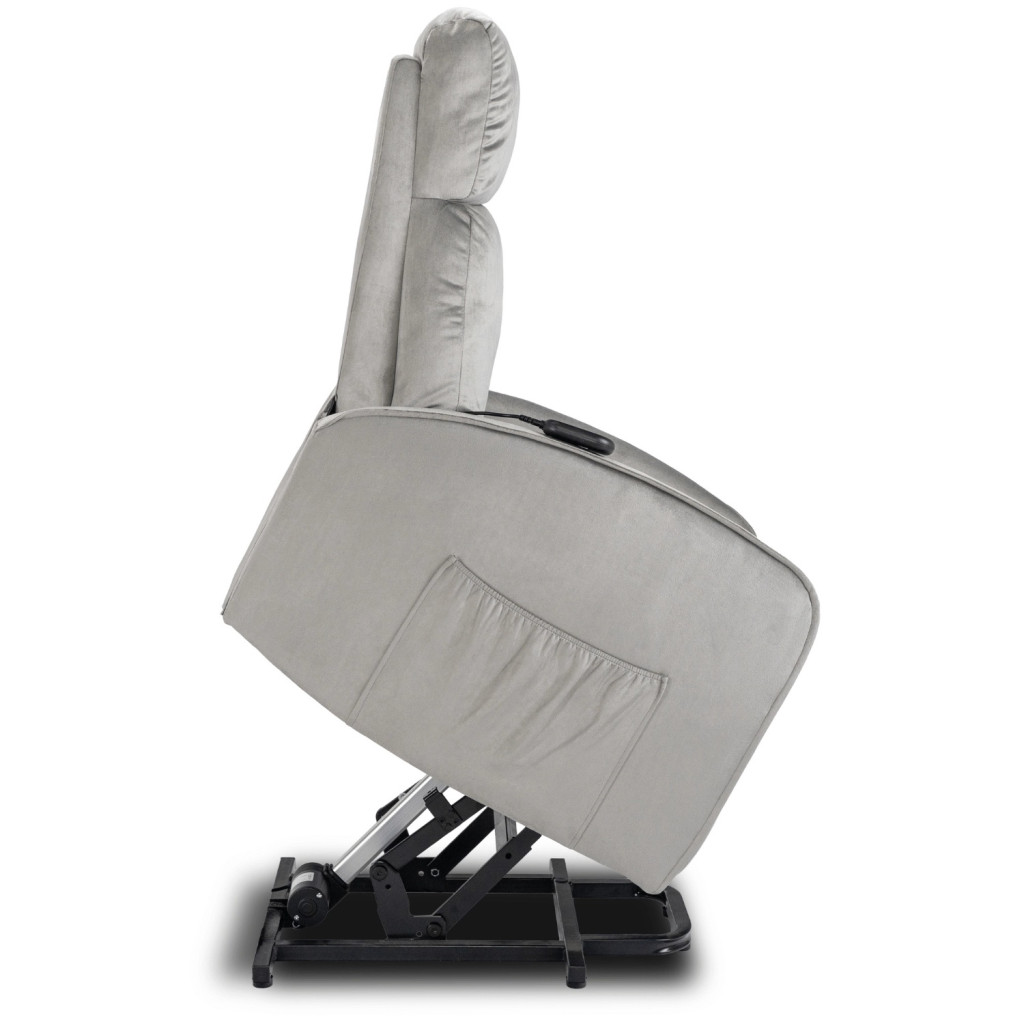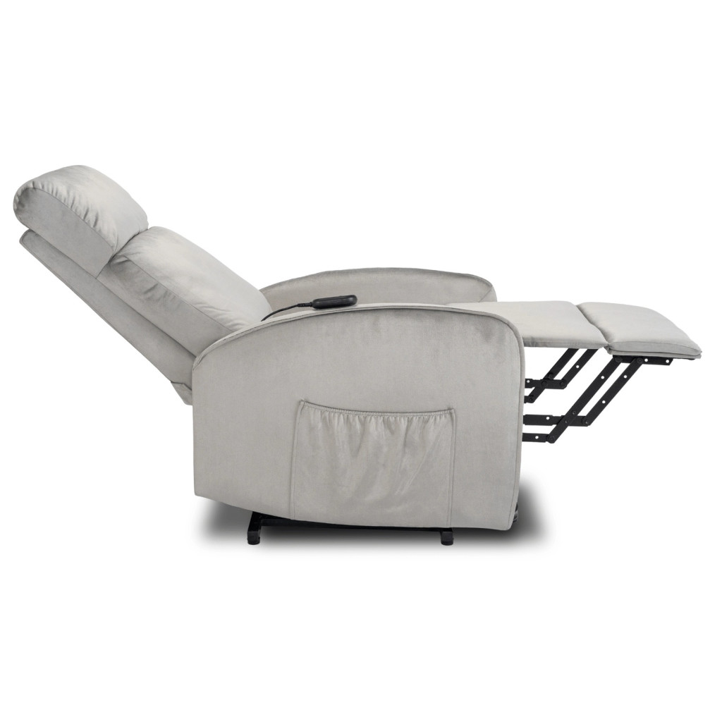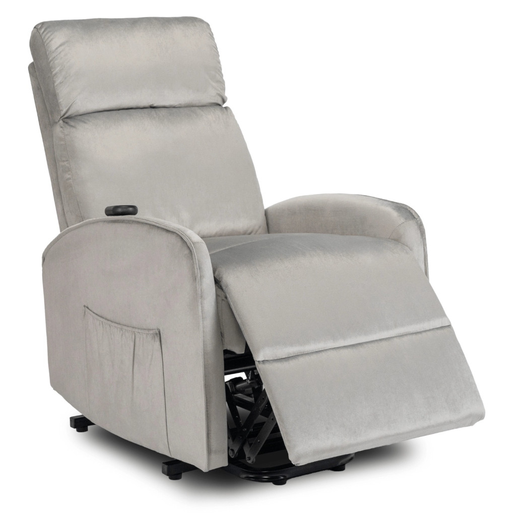 FOTEL COLTON Szary Welurowy z Funkcją Wstawania