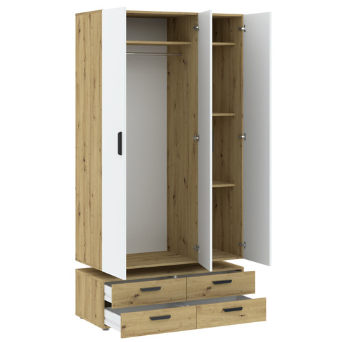 Šatníková skriňa BASIC 110 cm dub/biela 3 dvere 4 zásuvky