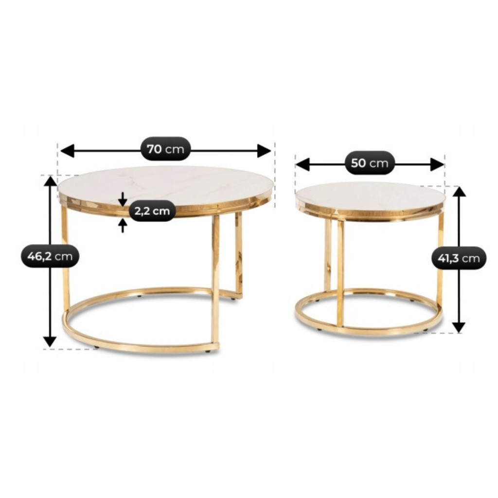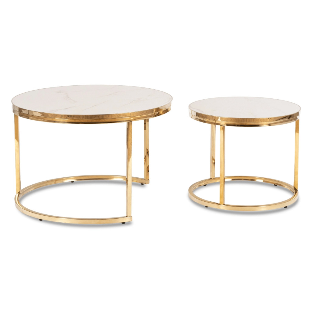 Zestaw Stolików Kawowych ARON Biały Marmur/Złoty