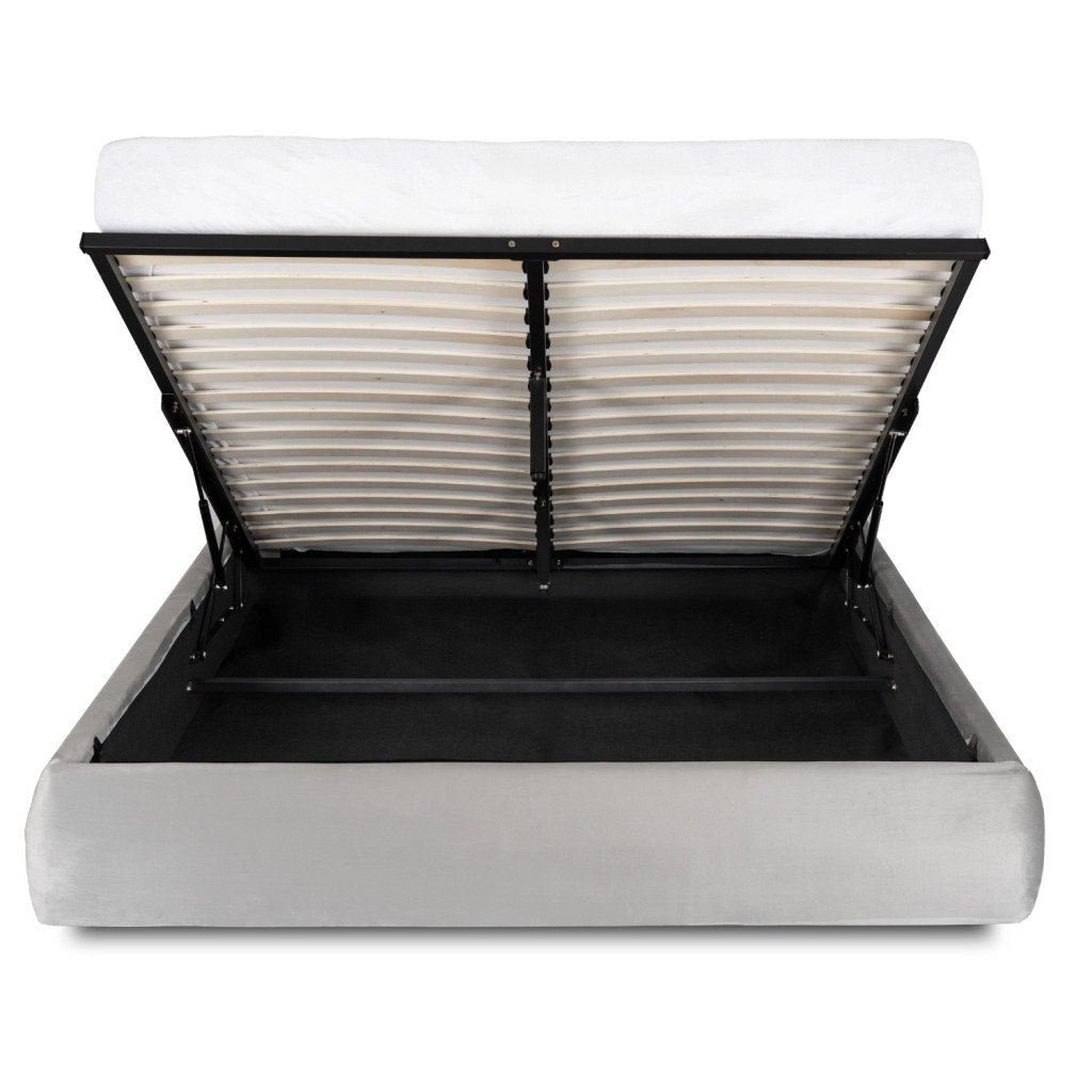 Posteľ 160x200 cm s úložným priestorom v sivej farbe s velúrovým čalúnením – BRISTOL
