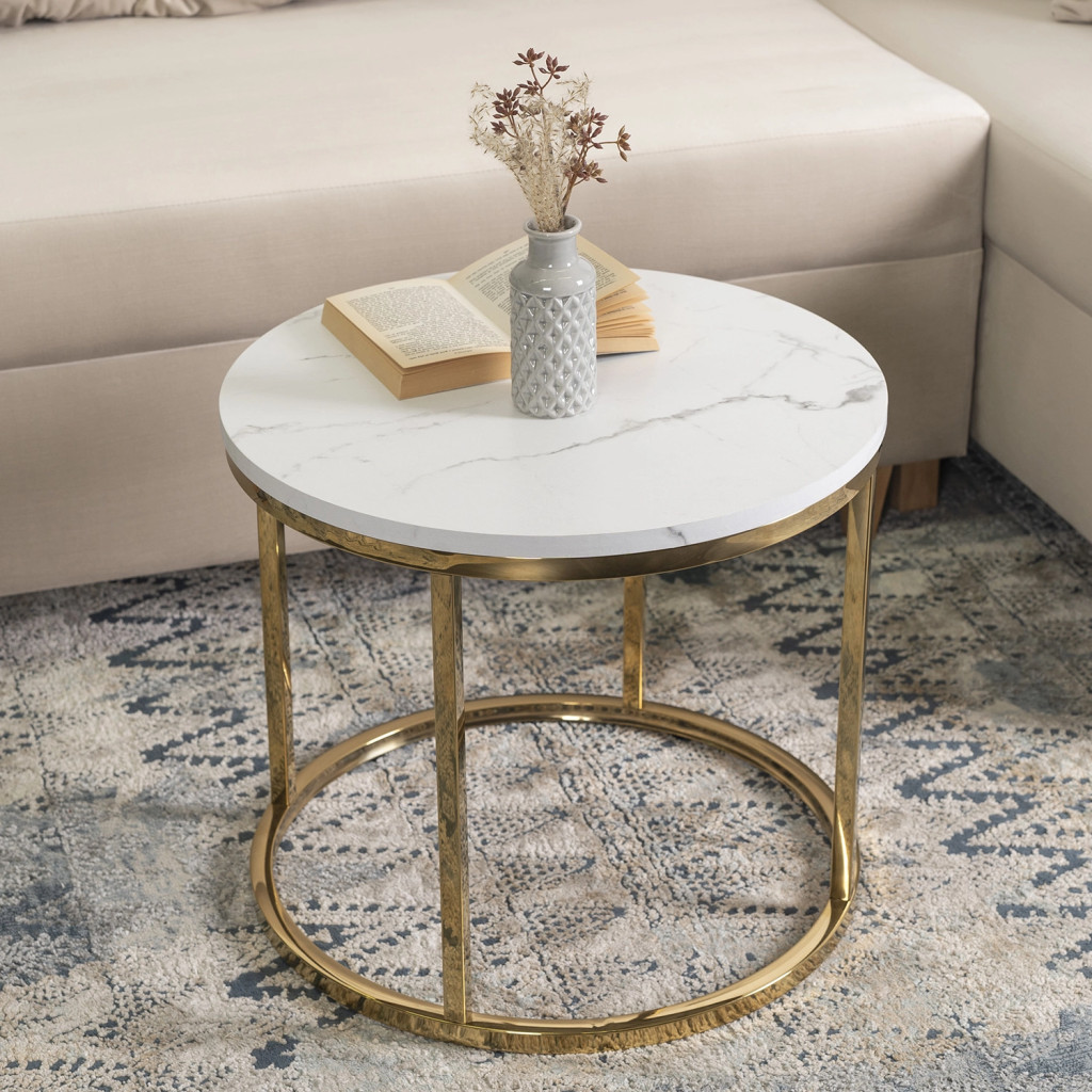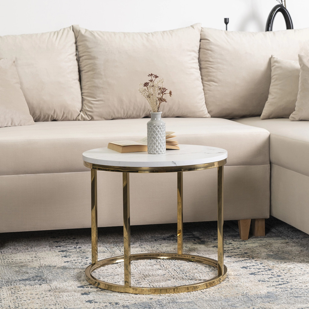 Asztal fehér márvány/arany színben CLIFF