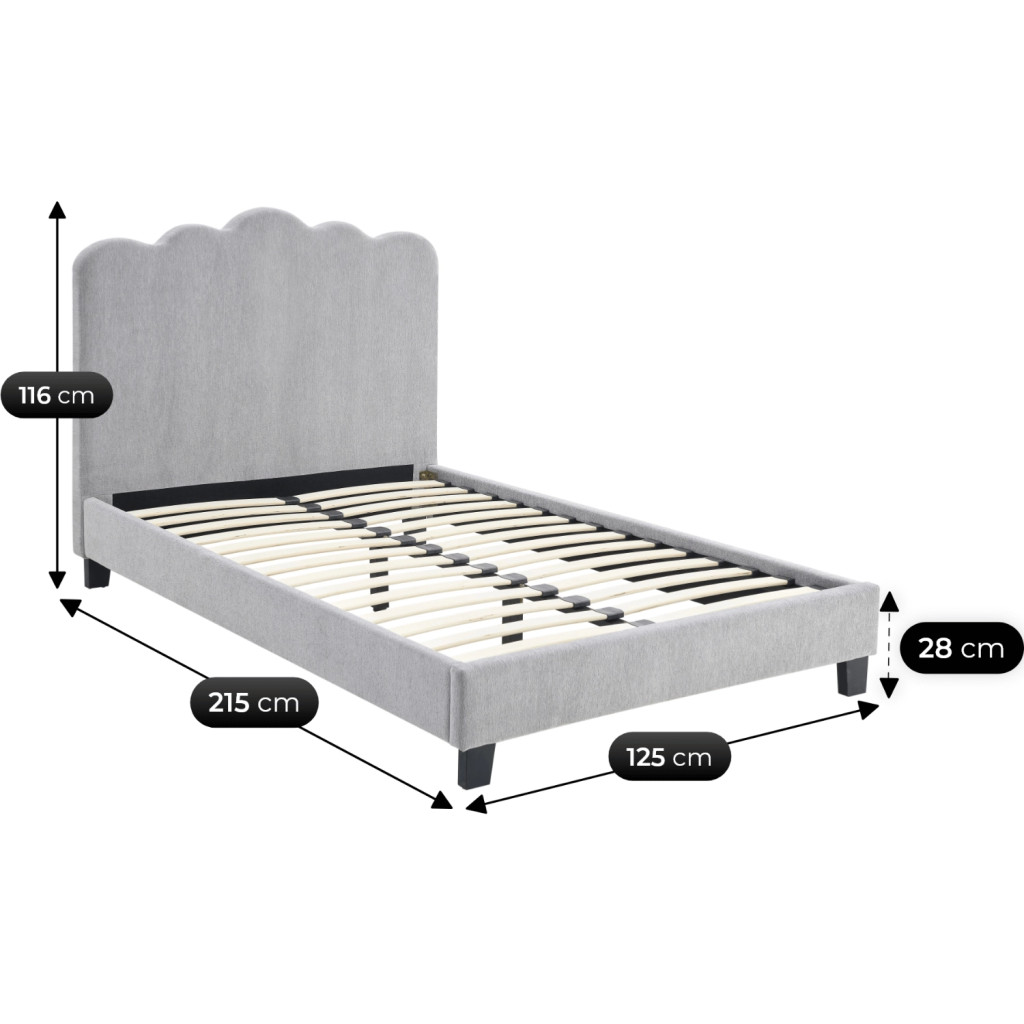 Posteľ 120x200 cm v sivej farbe s látkovým čalúnením – CRATER