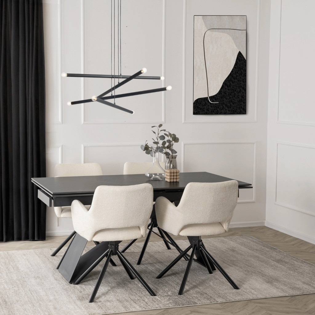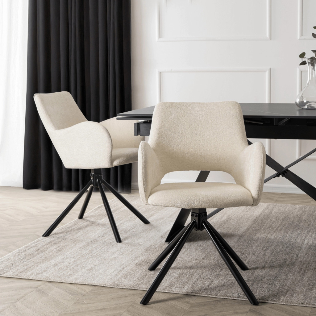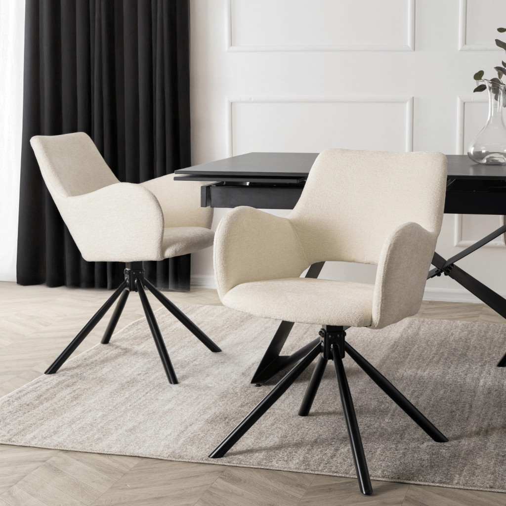 Stolička v krémovej farbe s bouclé čalúnením – FLAV