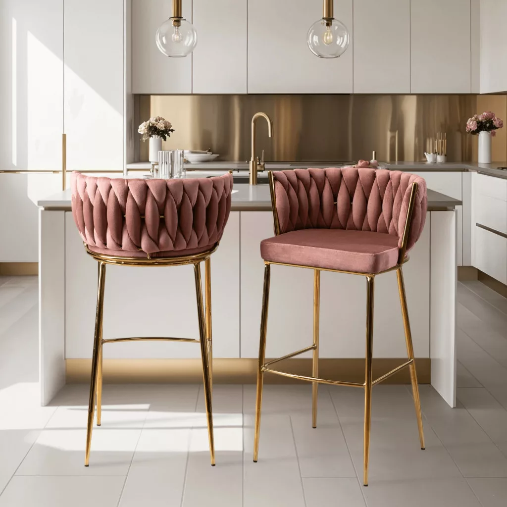 Bárszék 2 rózsaszín bársony, FLORES