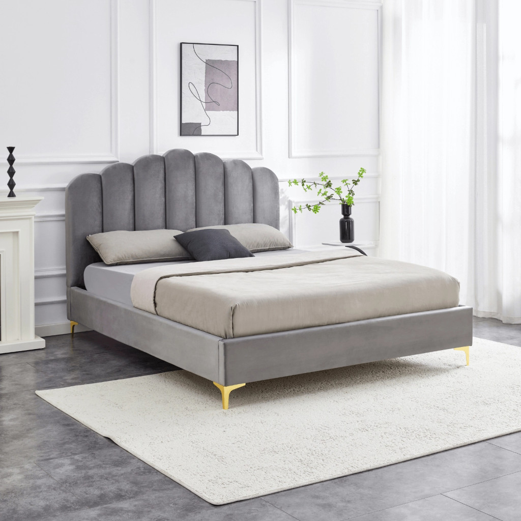 Posteľ 160x200 cm v sivej farbe s velúrovým čalúnením – GEMINI