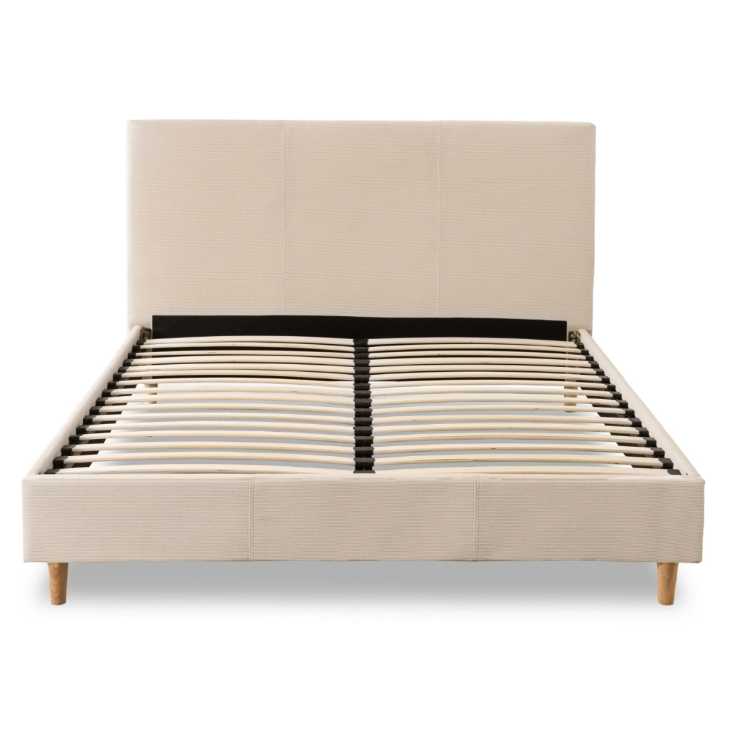 Posteľ 140x200 cm v béžovej farbe s kordovým čalúnením – KIOTO