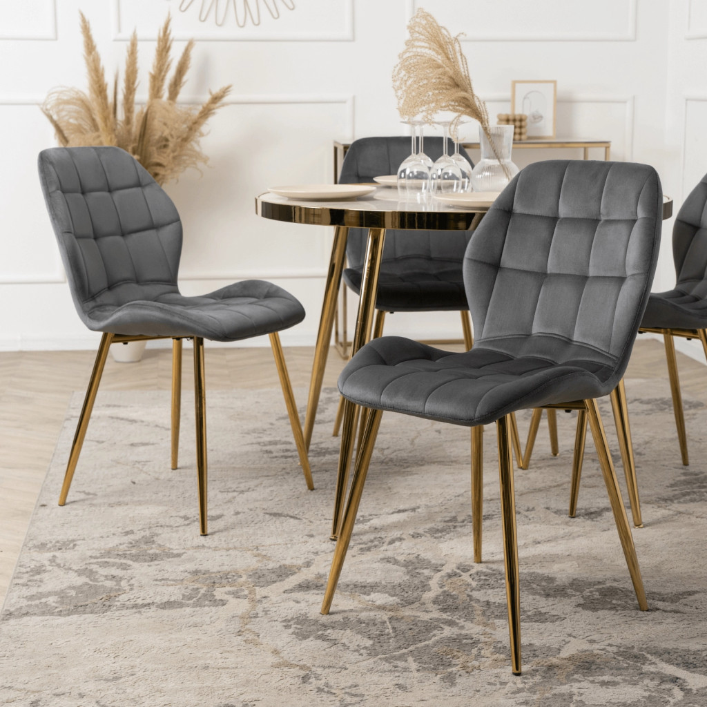 Krzesło LUCKY Szare ze Złotymi Nogami Welurowe