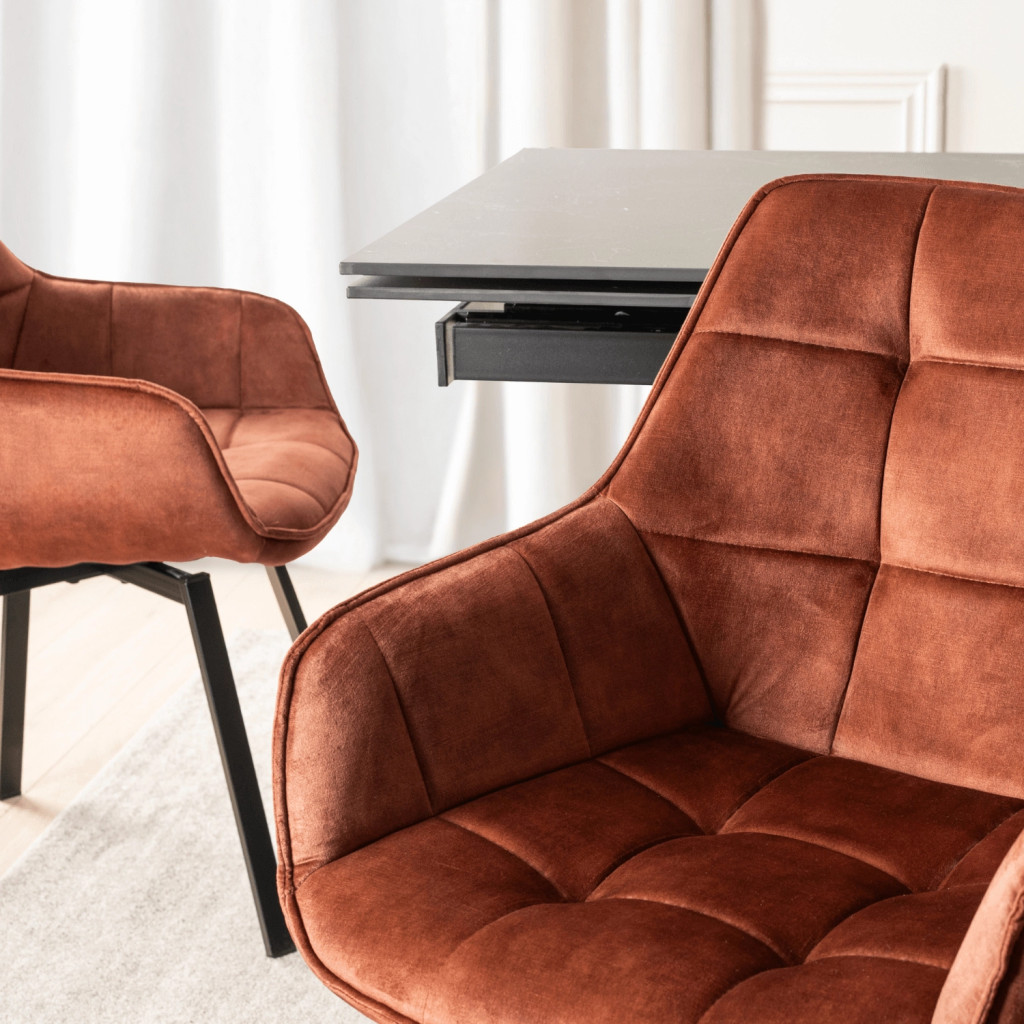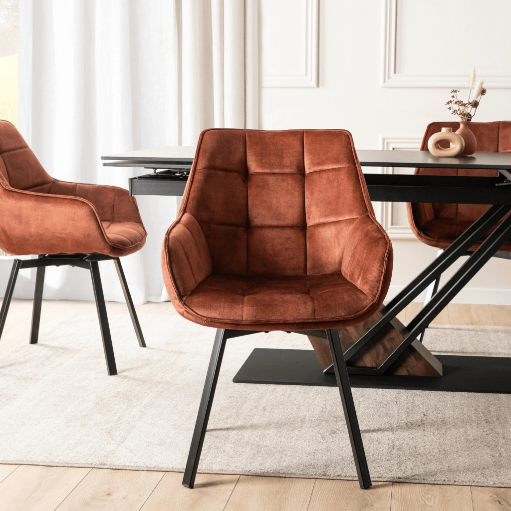 Otočná stolička čalúnená zamatom hrdzavá – LUNA
