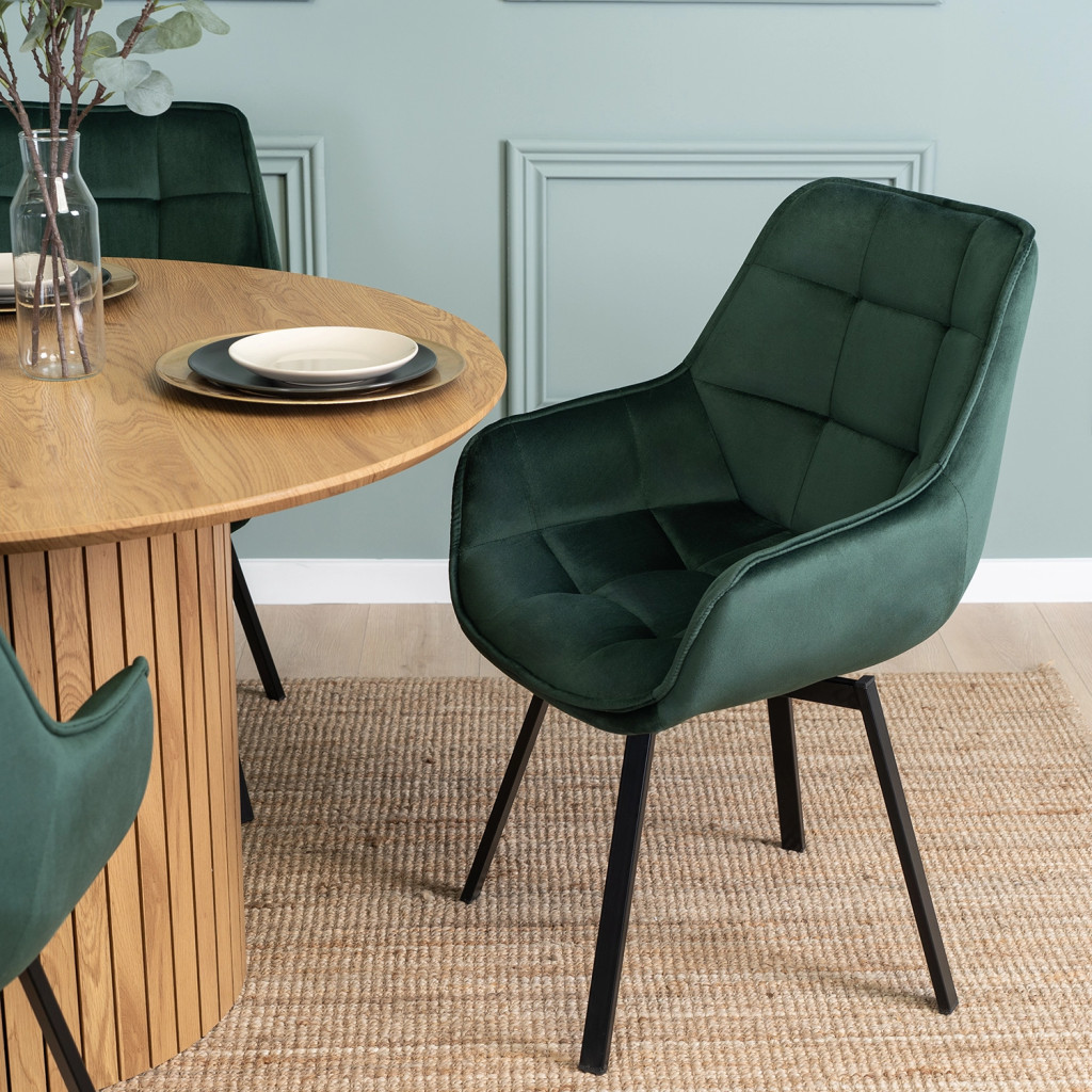 Otočná stolička čalúnená zamatom zelená – LUNA