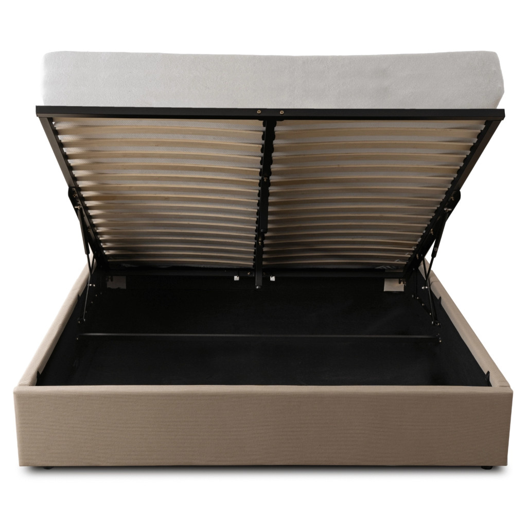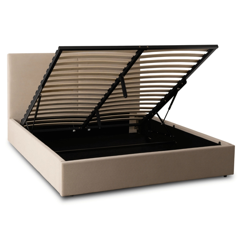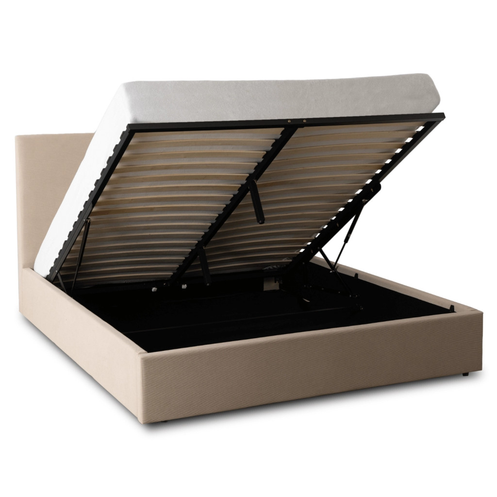 Posteľ 140x200 cm s úložným priestorom v béžovej farbe s kordovým čalúnením – MARSYLIA