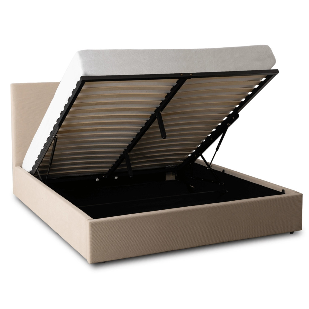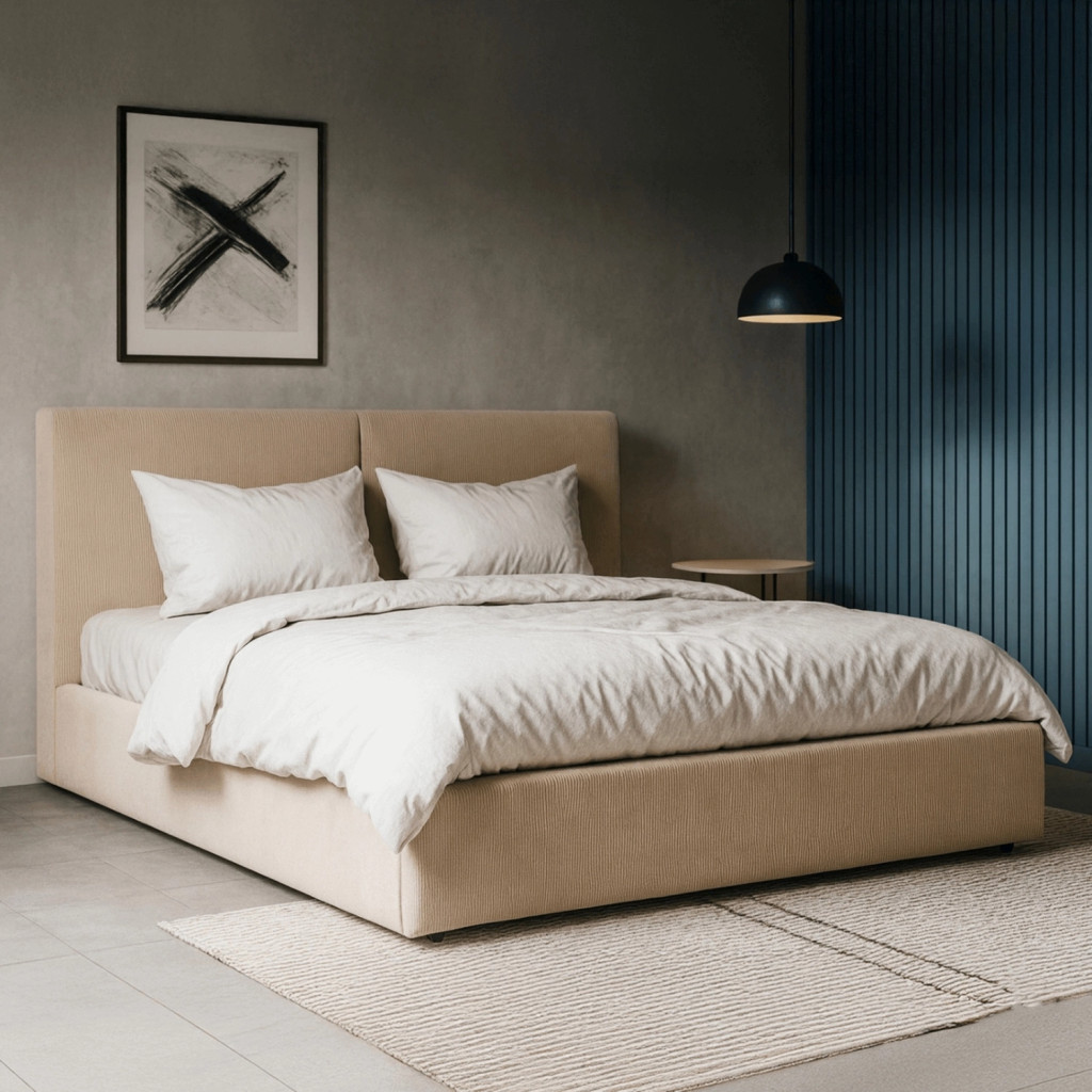 Posteľ 160x200 cm s úložným priestorom v béžovej farbe s kordovým čalúnením – MARSYLIA
