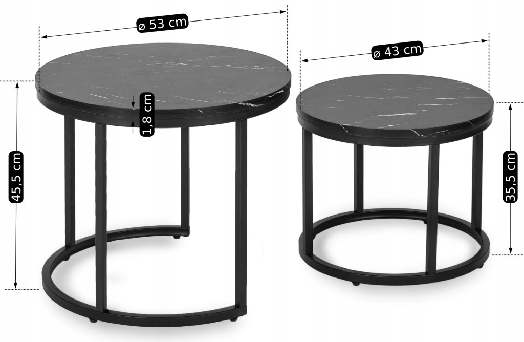 Dohányzóasztal szett fekete márvány hatású felülettel MAURO