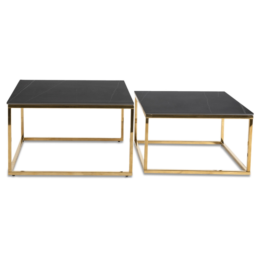 Kerámia dohányzóasztal szett fekete márvány hatású felülettel, arany kivitelben TENOR