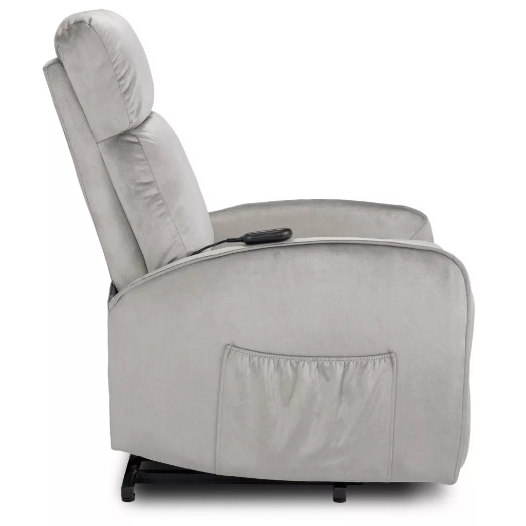 FOTEL COLTON Szary Welurowy z Funkcją Wstawania