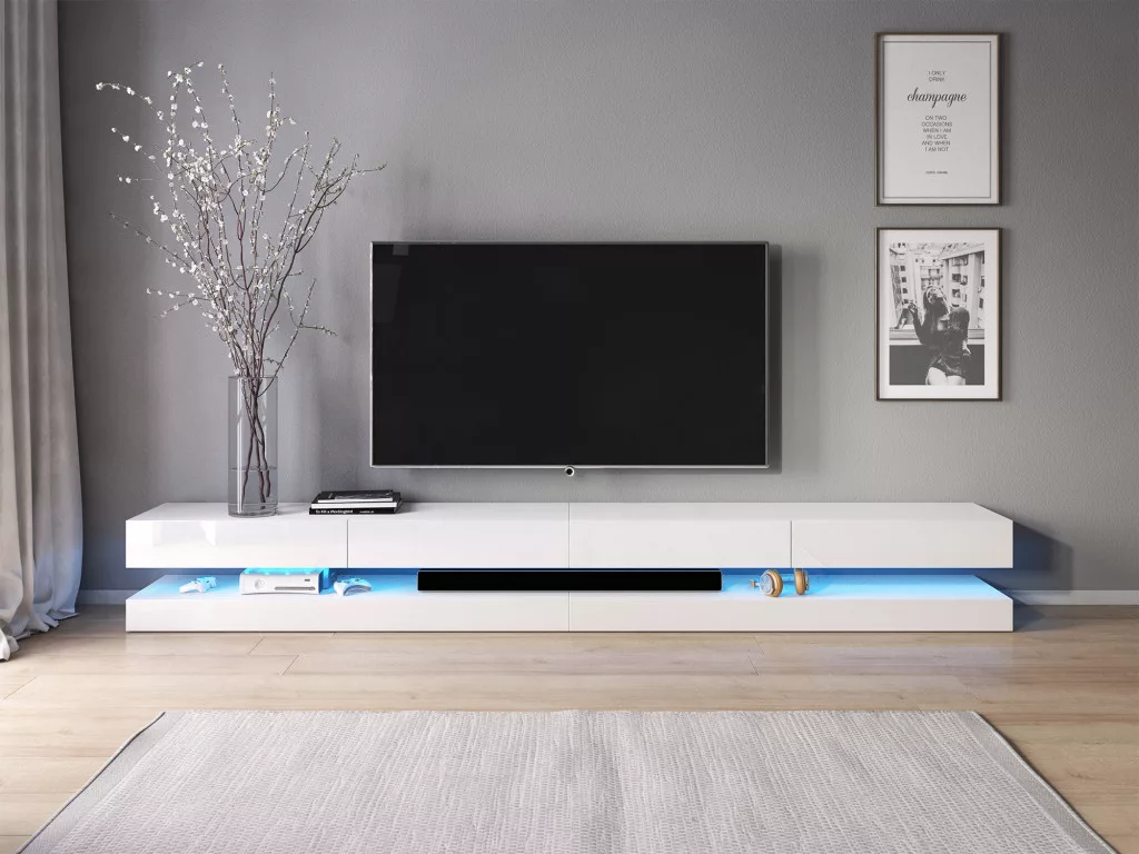 TV stolík FLY DOUBLE biela/biely lesk LED 5W