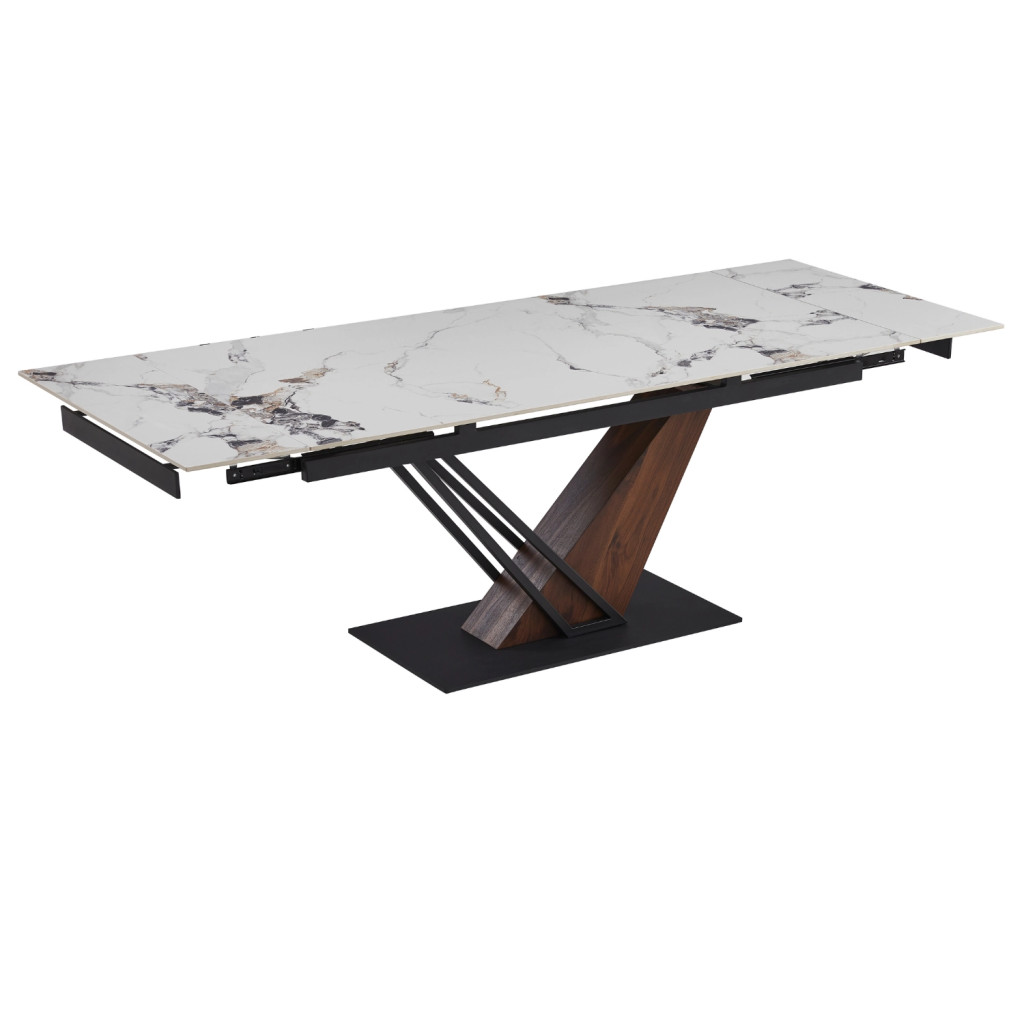 Kihúzható kerámia étkezőasztal 180–240 cm méretben, fehér márvány/dió színben REX 2